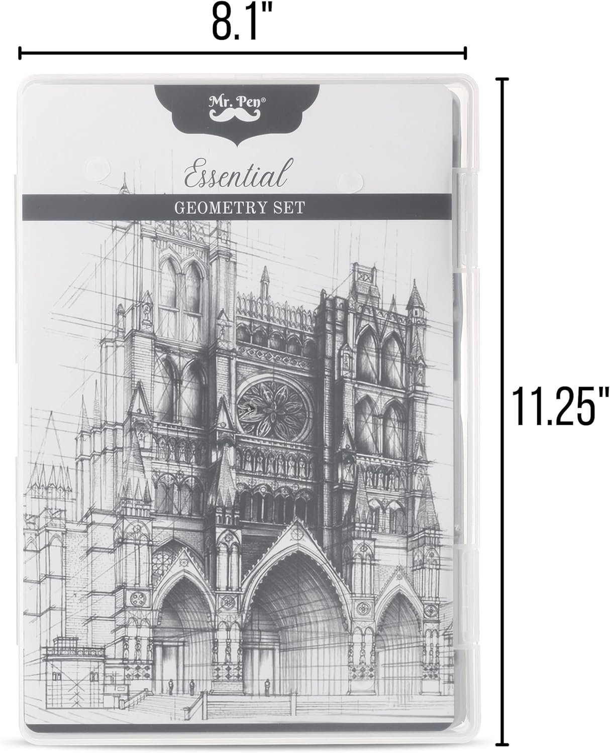 Mr. Pen- Professional Geometry Set, 15 pcs, Geometry Kit for Artists and Students, Geometry Set, Metal Rulers and Compasses, Drawing Tools, Drafting Supplies, Drafting Set, Drafting Tools and Kits