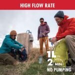Fast and easy to fill: Simply hang the 10-liter reservoir and purify up to 1L in 2 minutes based on an optimal hang height of 6 ft above the clean water output