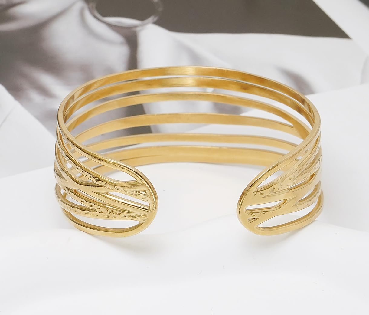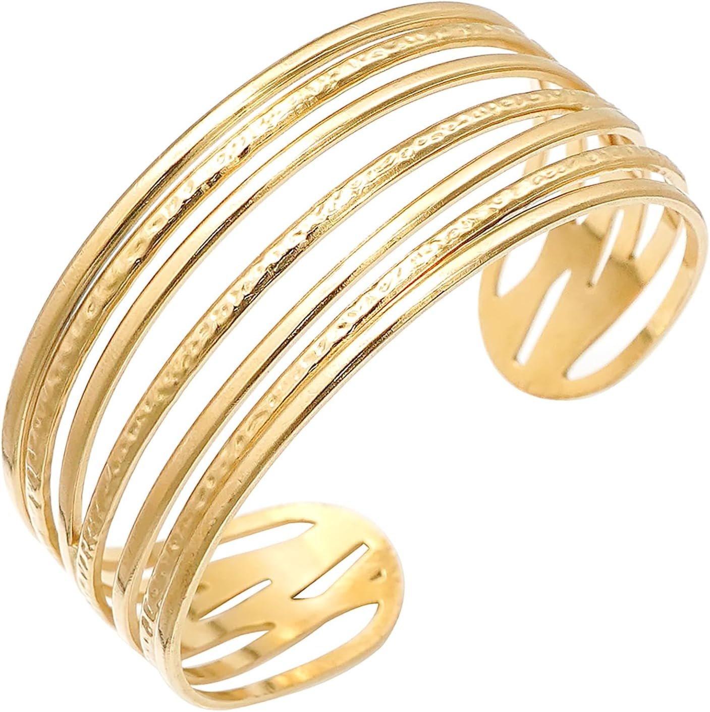 Design: The multi-layer open bangle design of this gold cuff bracelet allows you to stack it with other bracelets for a trendy and personalized look.
