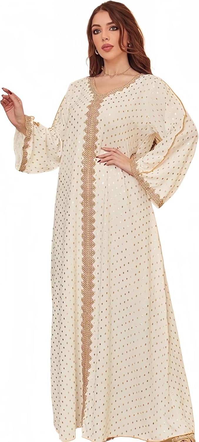 Muslim Abaya Dresses for Women V Neck Kaftan Islamic Prayer Robe Embroidered Bronzing Dress Holiday Evening Dress