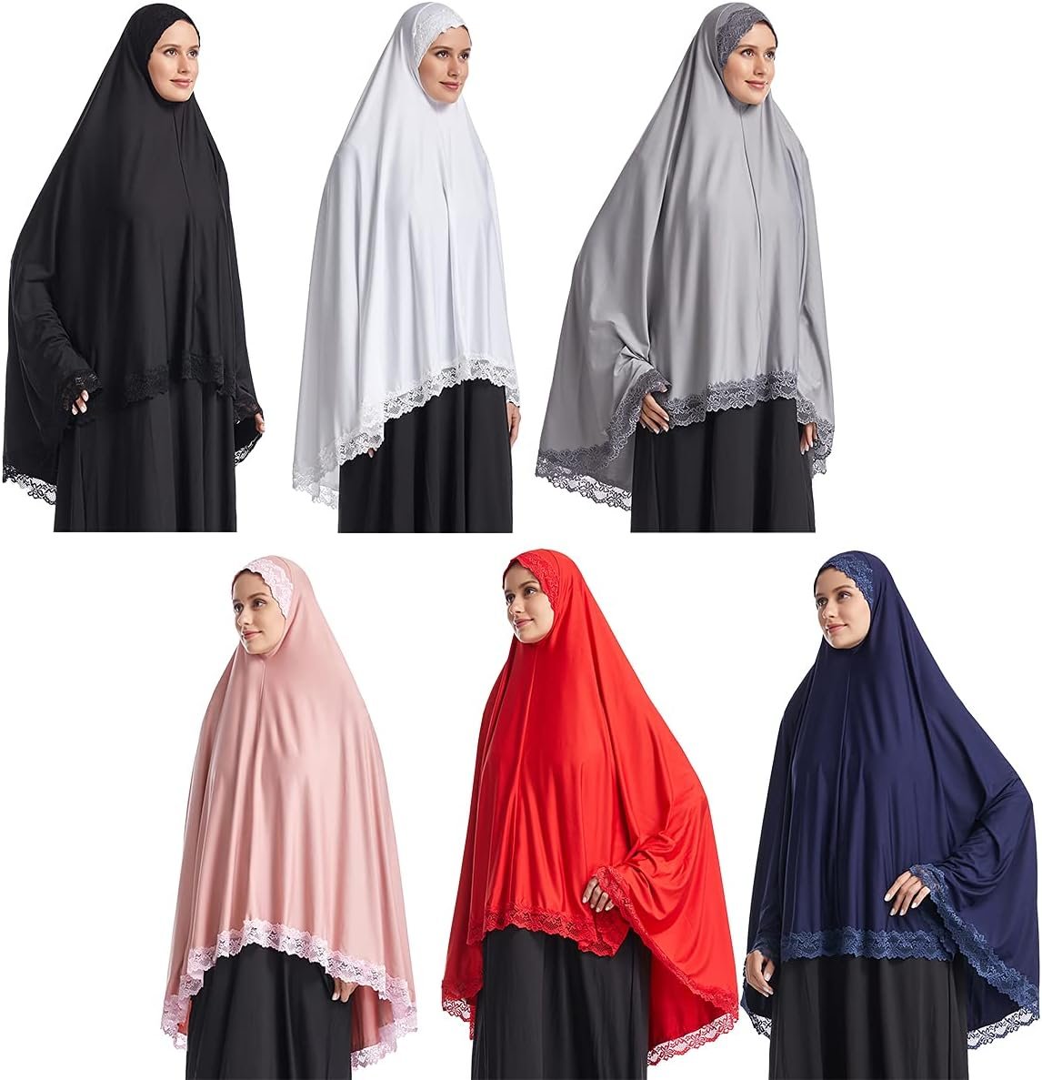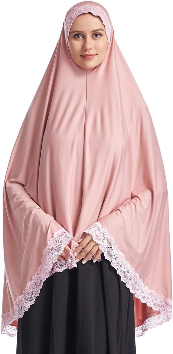 Muslim Lace Khimar Prayer Long Hijab for Women Middle Eastern Islamic Jilbab Prayer Veils Headcover Headscarf
