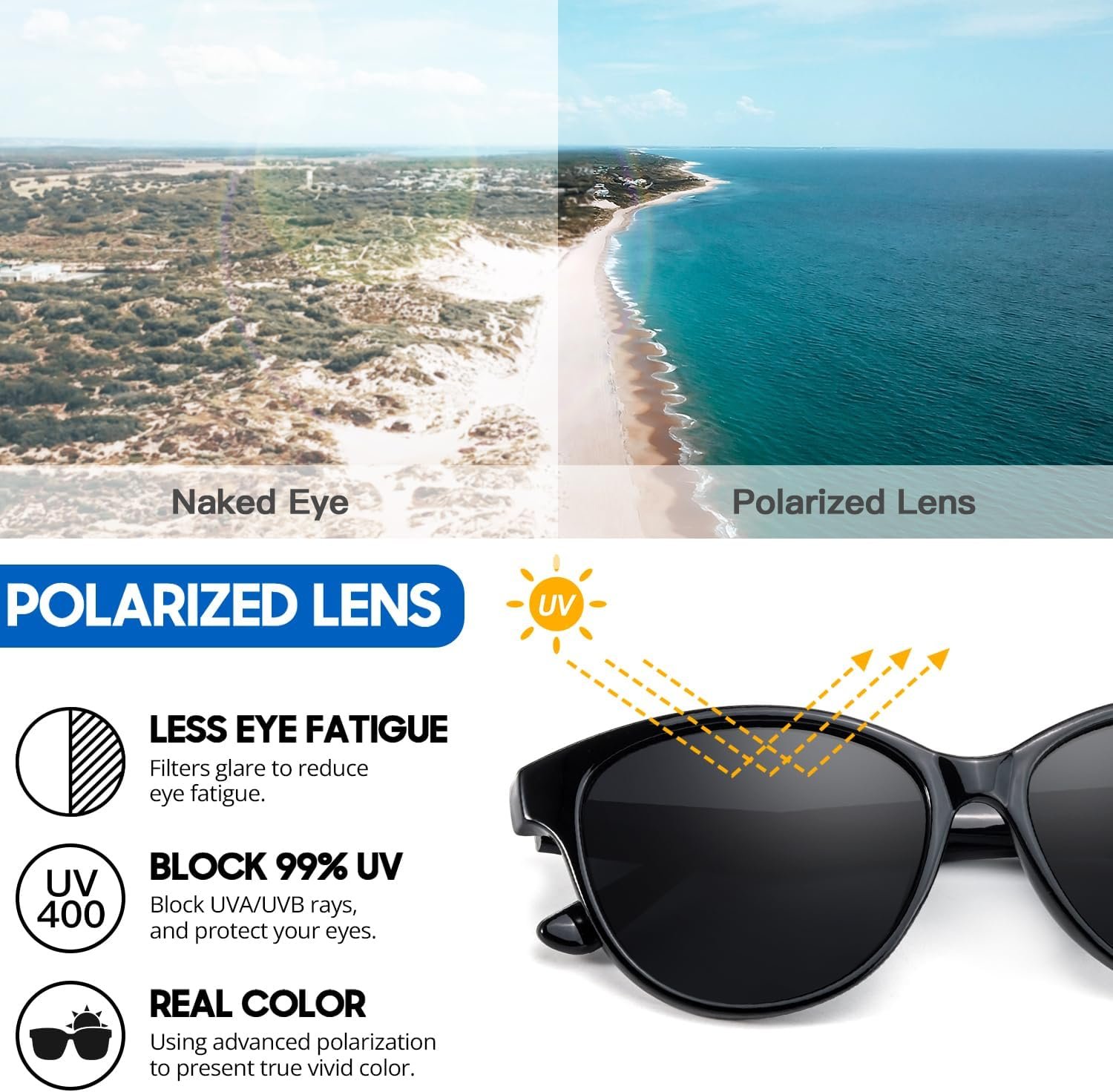 Myiaur Polarized Sunglasses for Women, Trendy Cat Eye Sun Glasses UV400 Protection Classic Retro Shade 2 Pack