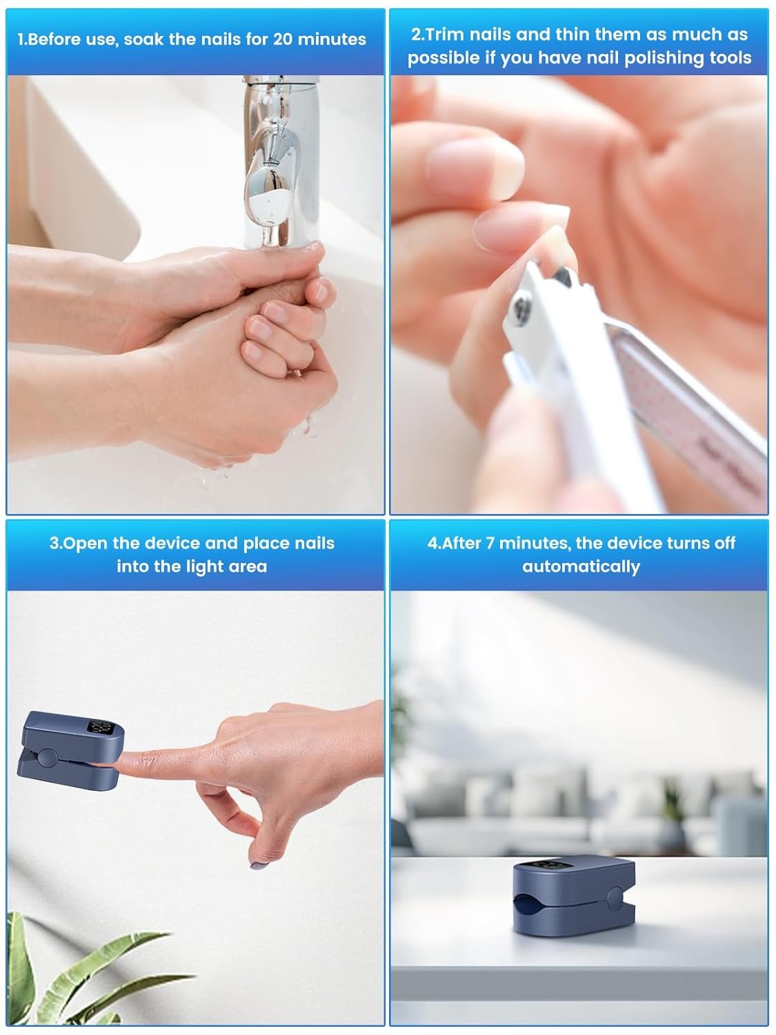 Easy to Use: This nail fungus light device is incredibly easy to use. It features a built-in timer that initiates a 7-minute session automatically, making it perfect for integrating into your daily routine