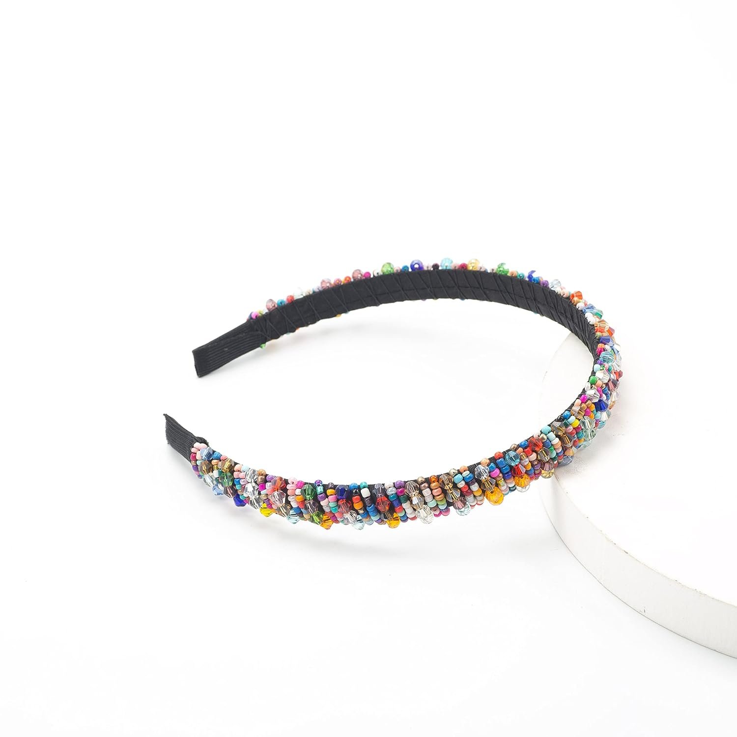 Customers appreciate the hairband’s beauty and quality. They find it pretty with crystal-like beads adding sparkle and a rainbow of colors. The color is true to the picture and the thickness is perfect. However, opinions differ on comfort.
