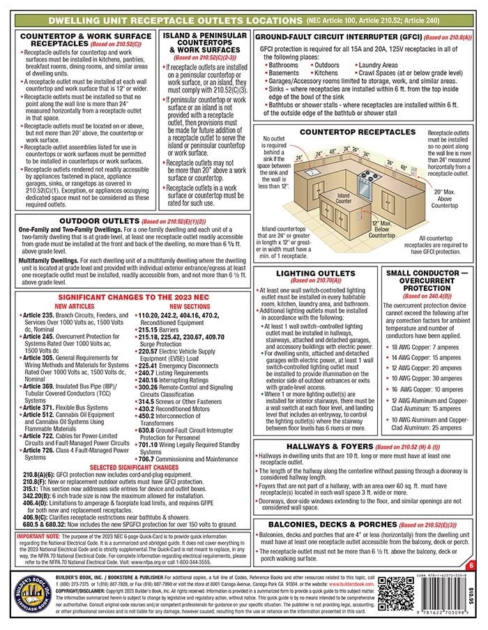 In this unique quick-reference guide, a single, 6-page laminated card, you get all the National Electrical Code (NEC) essentials you need to know based on the current 2023 NEC.