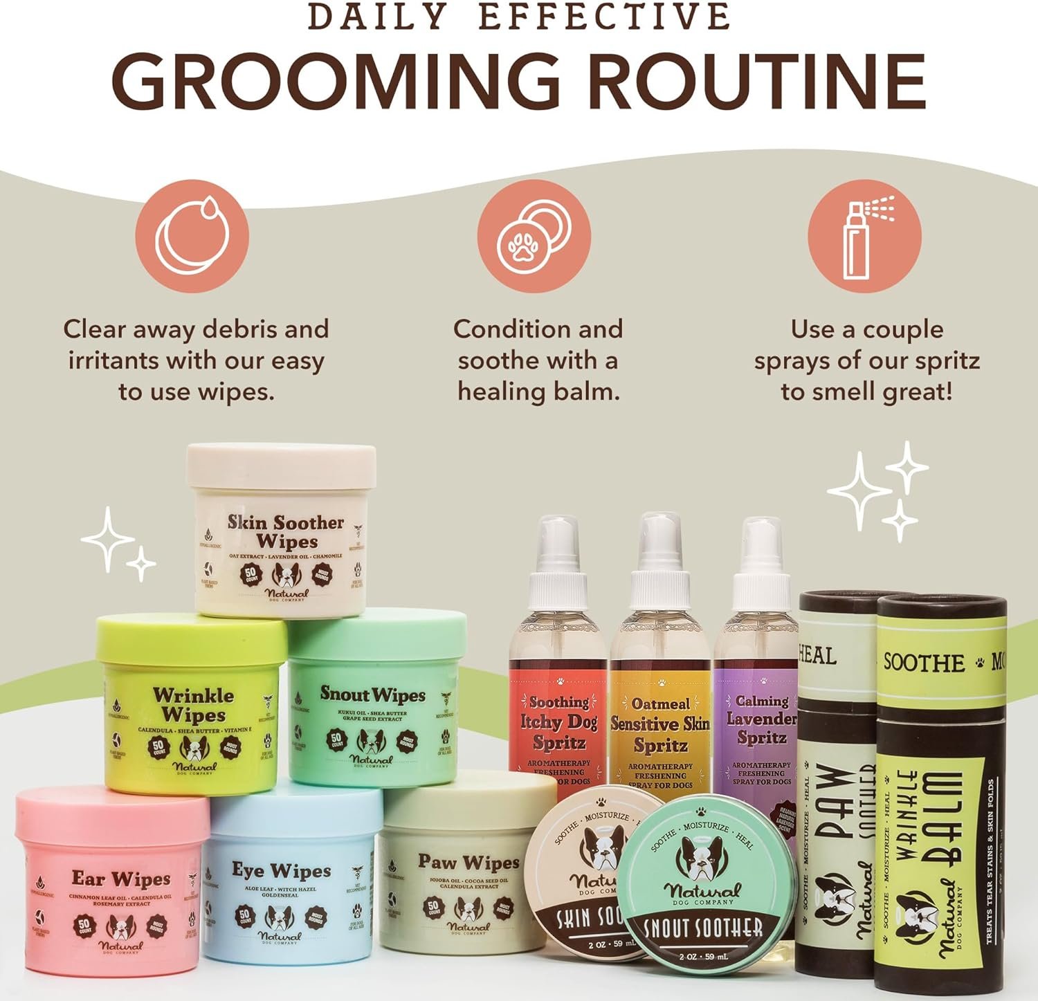 Healing Dog Wrinkle Wipes: Natural Dog Company Wrinkle Wipes are crafted to treat, heal, and protect your canine’s wrinkles with our plant based herbal pet wipes.