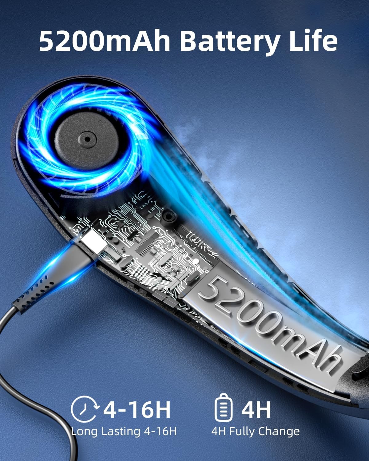 Neck Fan, Personal Fan with LED Display, USB-C Rechargeable, 5200mAh-Battery, 3-Speed Adjustment & Whisper-Quiet Operation, Perfect for Home, Travel, Sports