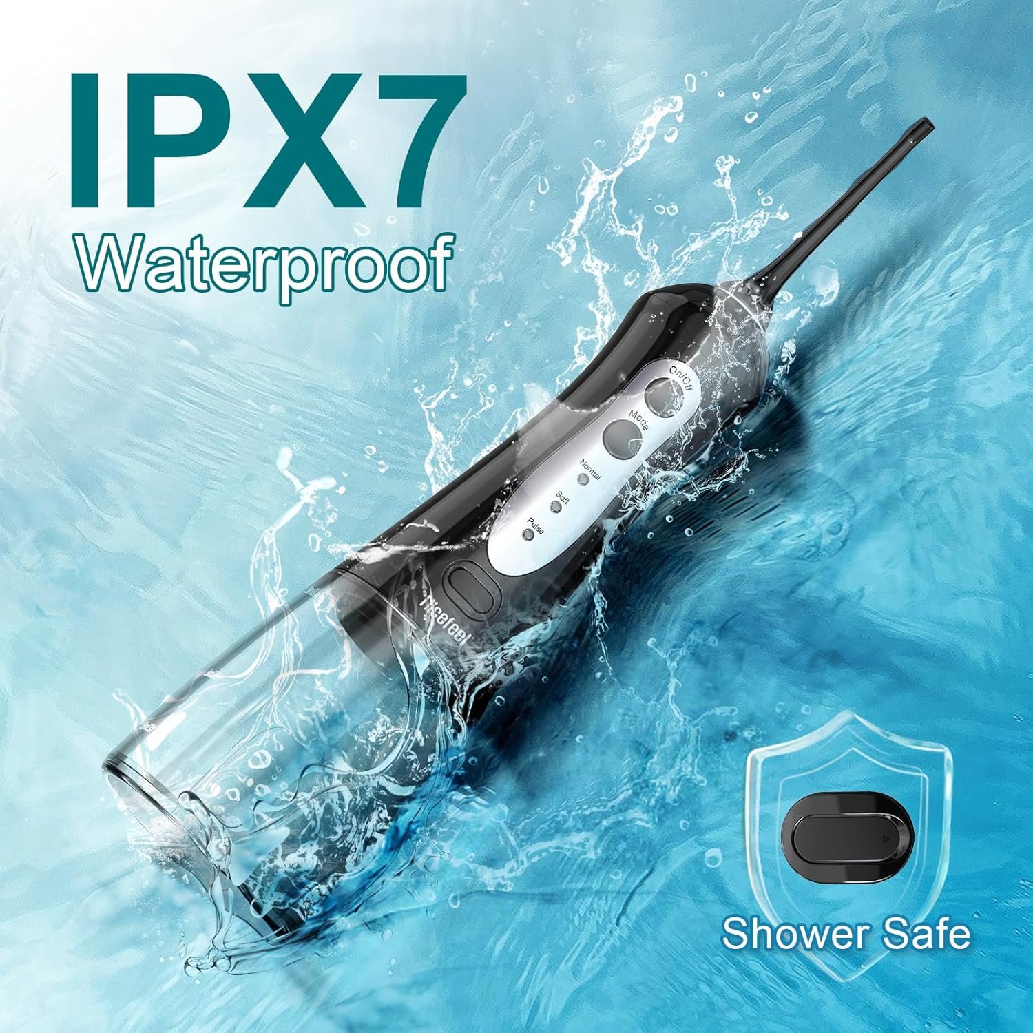 IPX7 Waterproof & Ergonomic Grip Design: Our water dental pick features a wide, textured handle for a comfortable, non-slip grip, reducing hand strain during longer use. With the IPX7 waterproof, the water flosser is safe to use in the shower, offering added convenience for your daily oral care routine.