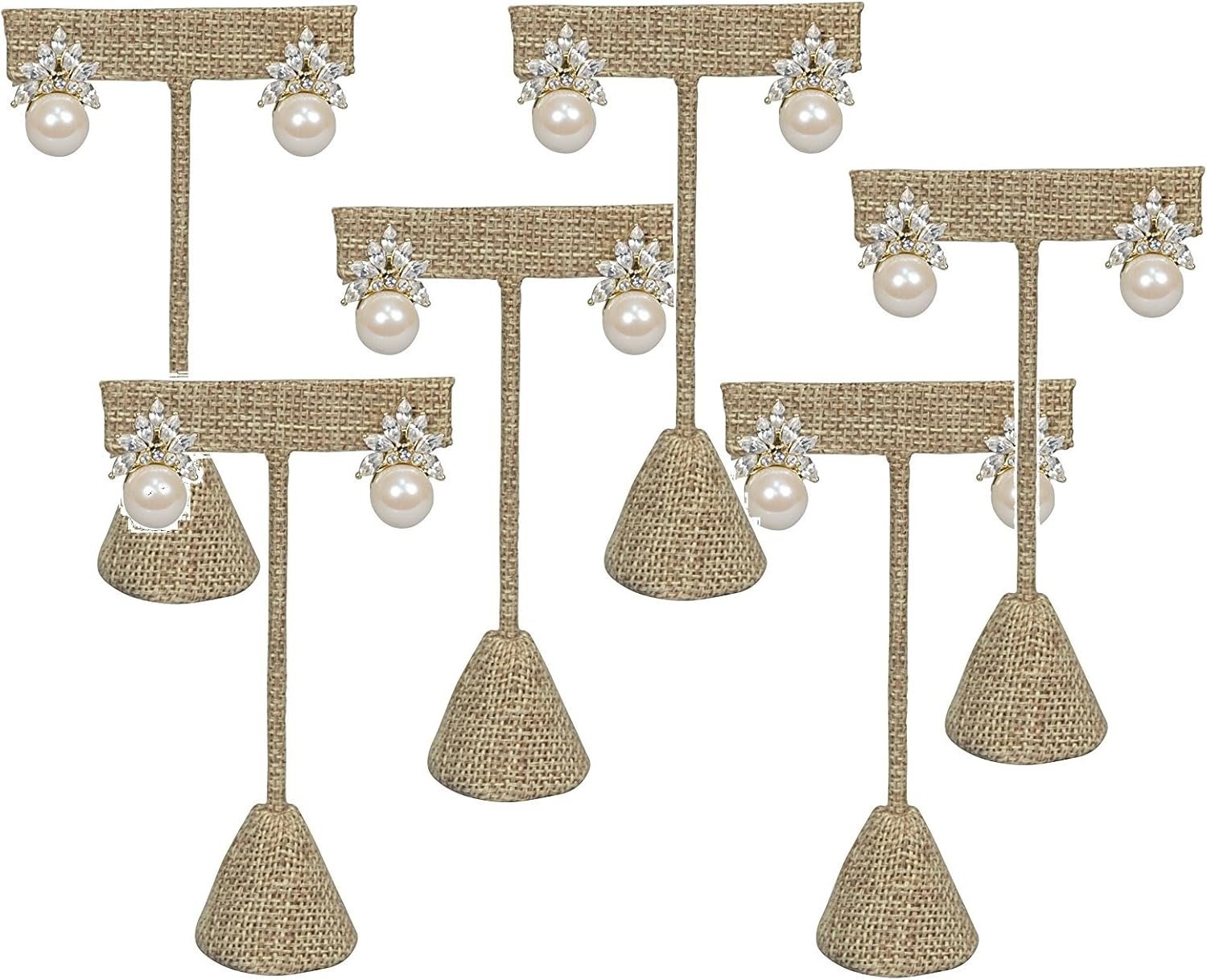 N’icePackaging 6Qty Burlap Canvas 6.75″ High Free-Standing Earring T-Stand Display, T Shape Holder for Tradeshow, Home Business, Promotion, or just for Home.
