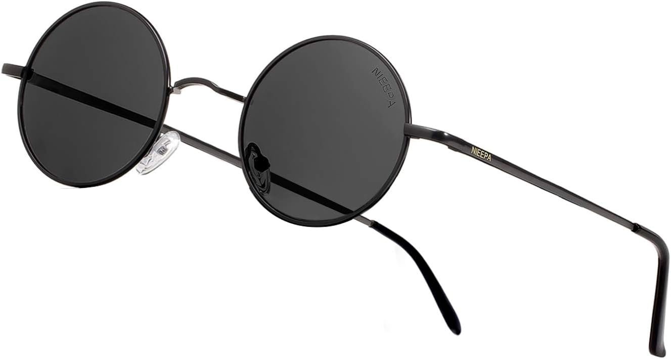 NIEEPA Vintage Small Round Polarized Hippie Sunglasses for Men Women Circle Sun Glasses NP1002