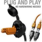 AC Port Plug – A 125-volt power inlet socket with a dual integrated 18-inch outdoor extension cord for a car, boat, marine, truck, trailer, pickup, RV, industrial and electrical applications.