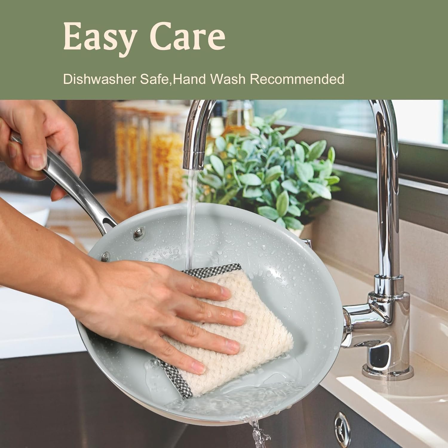 Premium Ceramic Coating: Our nonstick frying pans feature a high-quality ceramic coating that provides an exceptional non-toxic surface for cooking. Free from PFOA and PTFE, these frying pans ensure safe cooking without harmful chemicals.