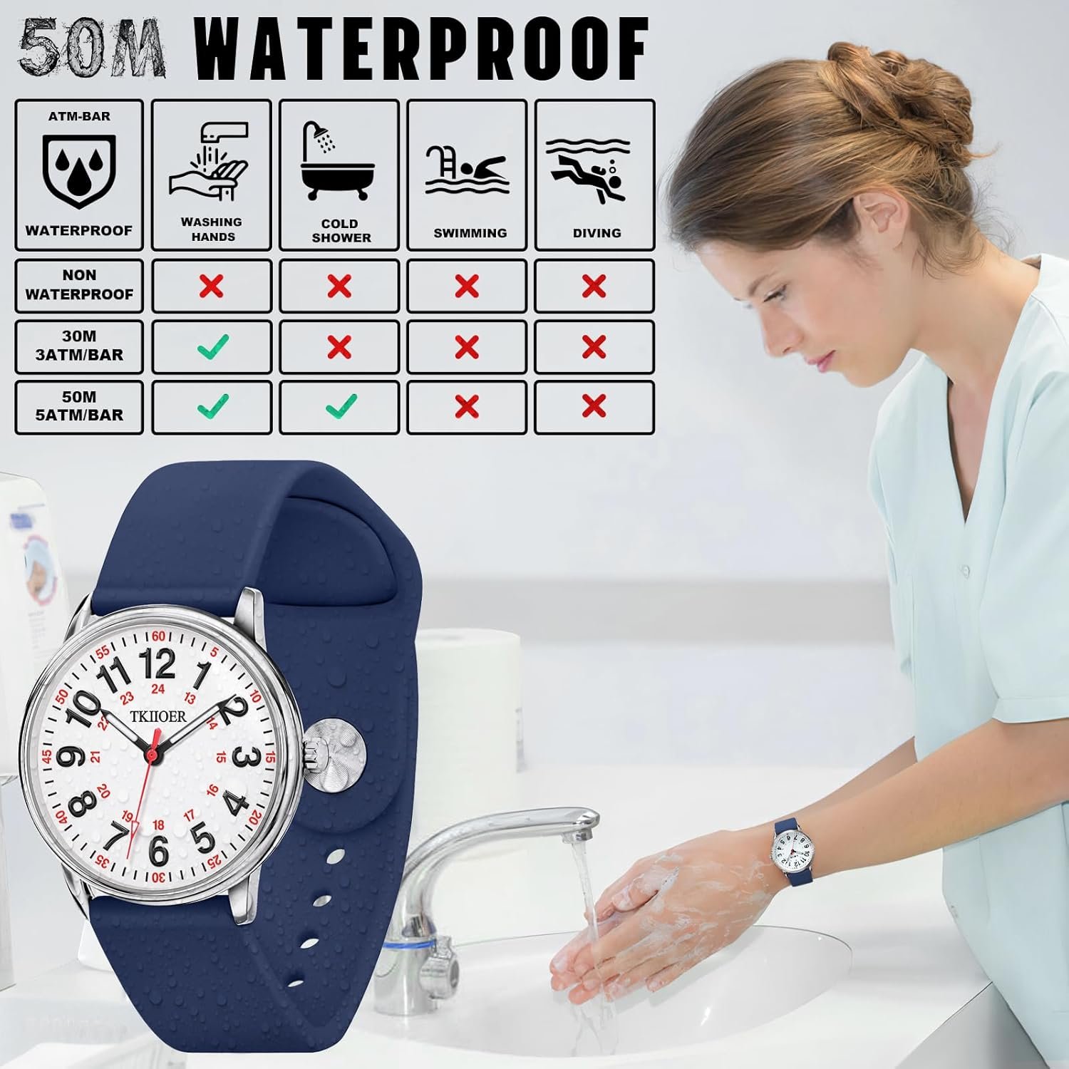 Nurse Watch for Nurse Medical Professionals Students Women Men, 50M Waterproof 12/24 Hour Military Time Luminouse Easy Read Dial, Second Hand Watch for Nursing