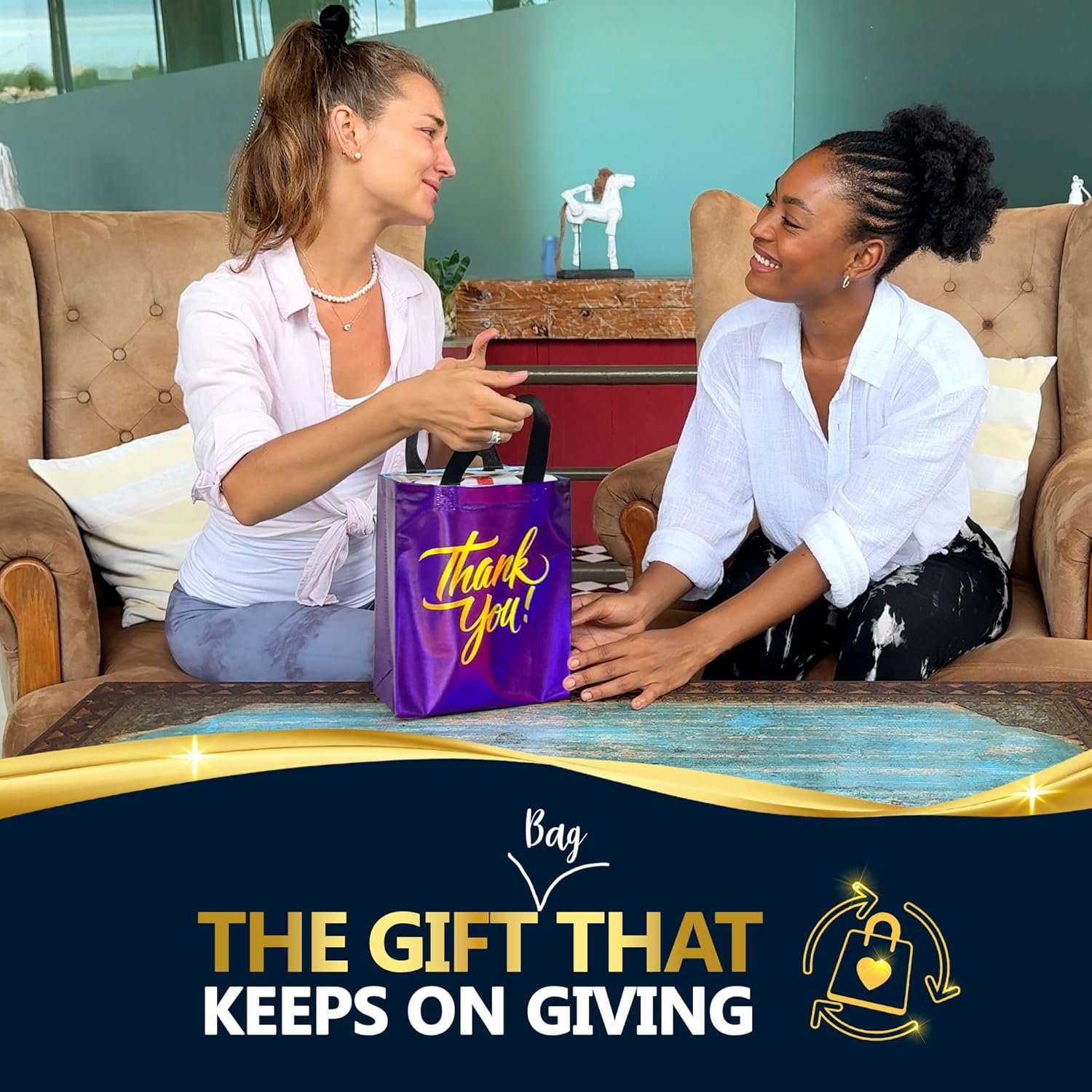 GO PAPERLESS—Our reusable thank you gift bags with handles are made from Polypropylene ( the same material reusable bags in supermarkets and stores are made from). These are not your generic old paper gift bags but a new breed of reusable tote bags designed for those who seek to combine glam and sustainability.