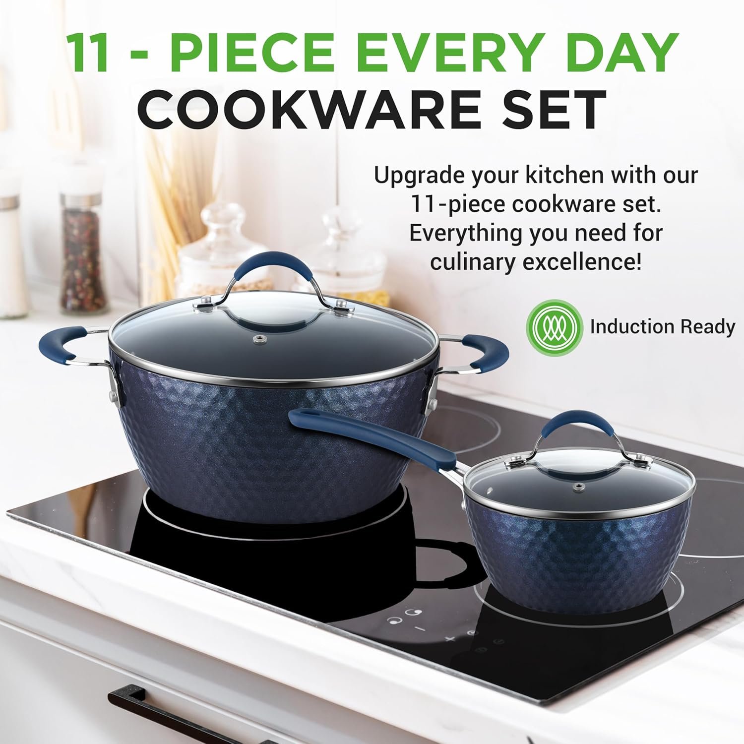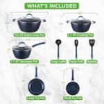 NutriChef 11 Pc Blue Diamond Nonstick Ceramic Cookware Set – Durable Pots and Pans with Cool-Touch Handles, Lids, Utensils