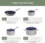 Nuwave 7pc Cookware Set Healthy Duralon Blue Ceramic Nonstick Coated, Diamond Infused Scratch-Resistant, PFAS Free, Oven Safe, Induction Ready & Evenly Heats, Tempered Glass Lids & Stay-Cool Handle