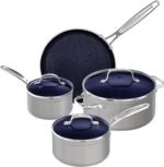 WHAT’S INCLUDED – 1.5 qt. saucepan with lid; 2 qt. saucepan with lid; 5 qt. stock pot with lid; and 9.5” fry pan. Every piece is treated with the revolutionary Duralon Blue Ceramic Coating.