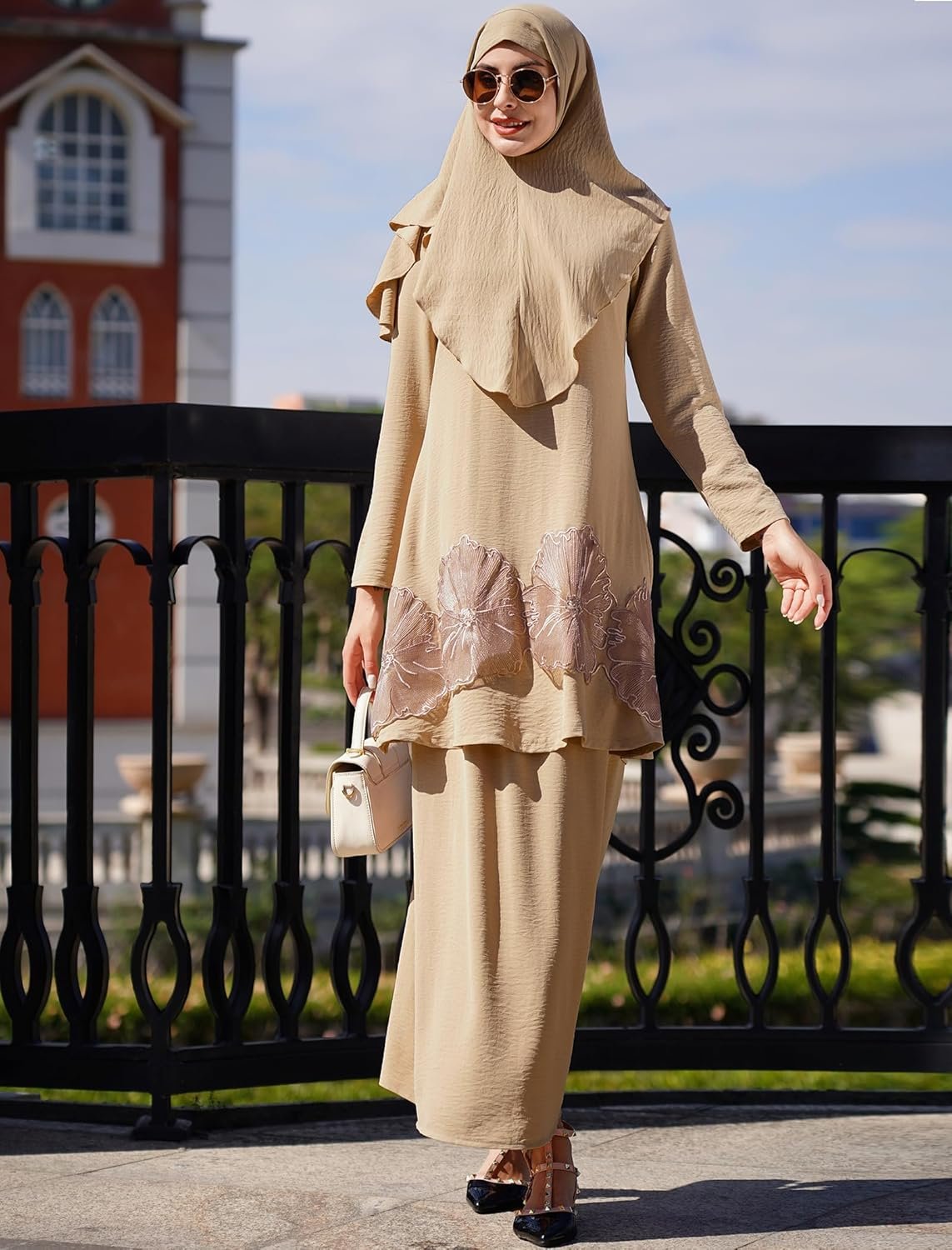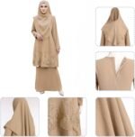 ODIZLI Women’s Muslim Three-piece Outfits Long Sleeve Lace Top Abaya and Ruffle Skirt with Hijab Islamic Dubai Kaftan