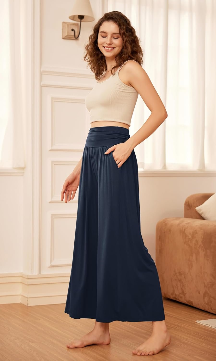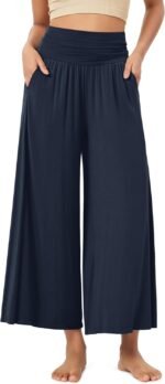 ODODOS Women’s Wide Leg Palazzo Lounge Cropped Pants with Pockets Light Weight Comfy Pajama Capri Pants-20/22″/ 24″ Inseam