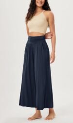 Customers find these pants comfortable with silky smooth material and a flattering fit, particularly noting their suitability for pregnancy. They appreciate the style, with one customer highlighting the nice drape, and find them cute enough to wear out in public. Customers like the lightweight material that’s not too thin, with one mentioning it’s great for summer and warm fall, and they like the pockets, with one noting they’re decently sized. Customers find the pants wash well and keep them cool.