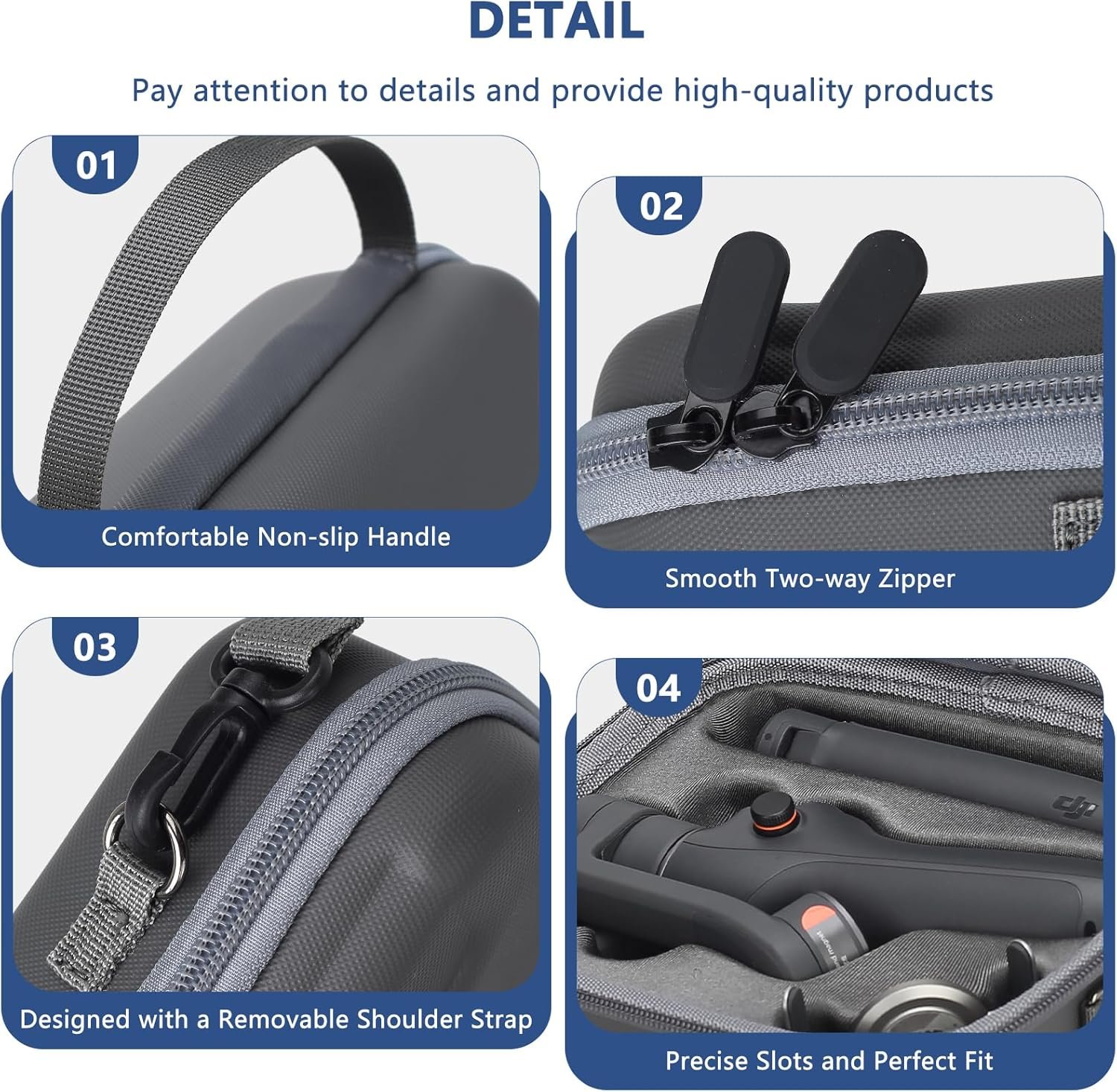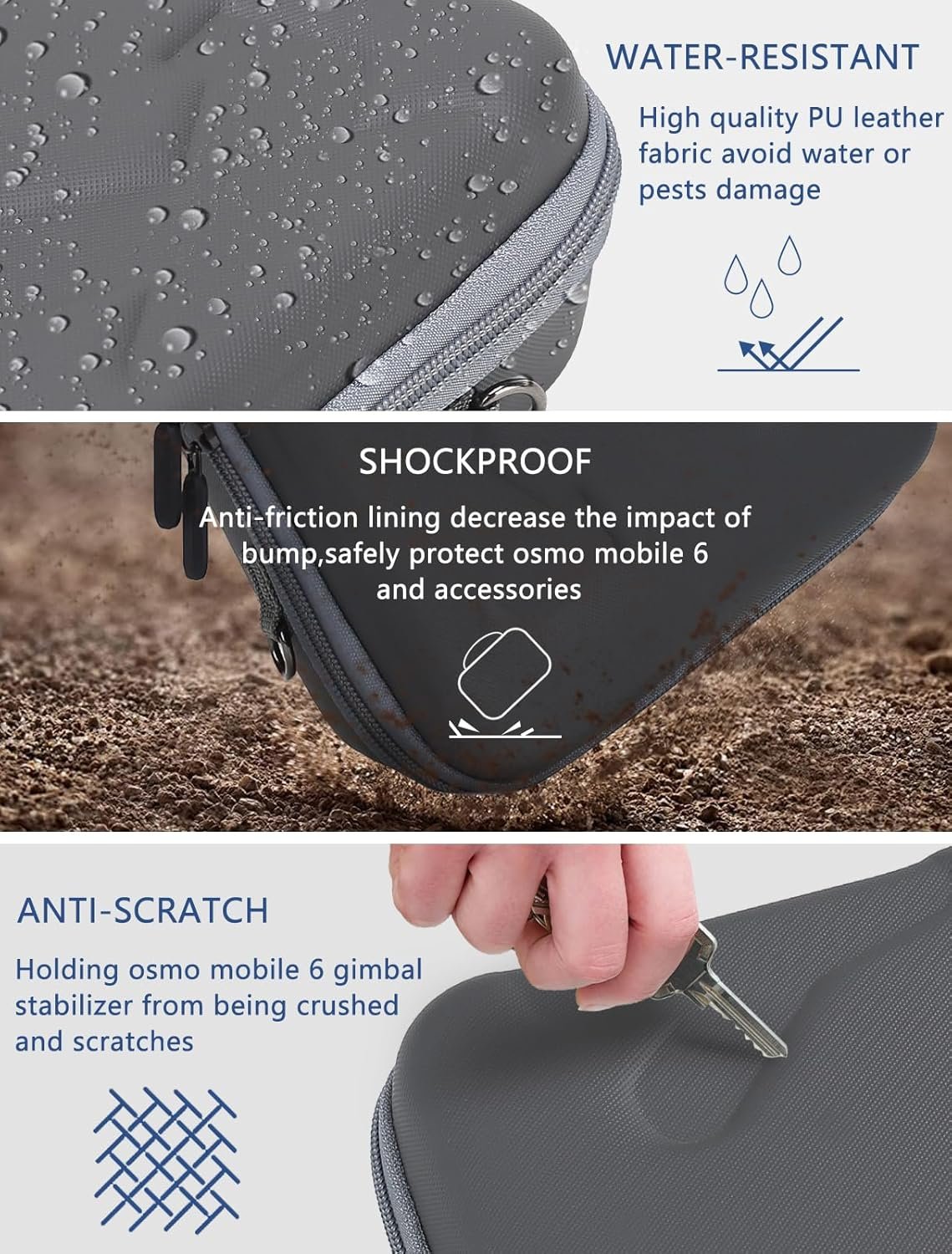 【Professionally Protective】This dji om 6 travel case is made of high quality durable waterproof PU material and soft shockproof double-layer Lycra lining to secure your dji om 6 accessories in place and deliver a quick access whenever you want, a perfect case protects your items.