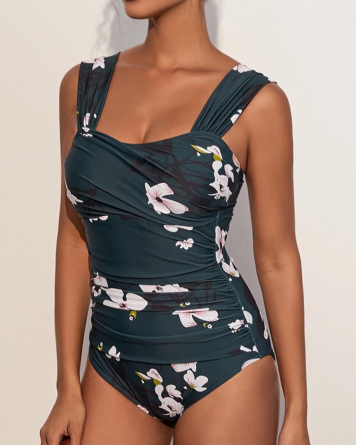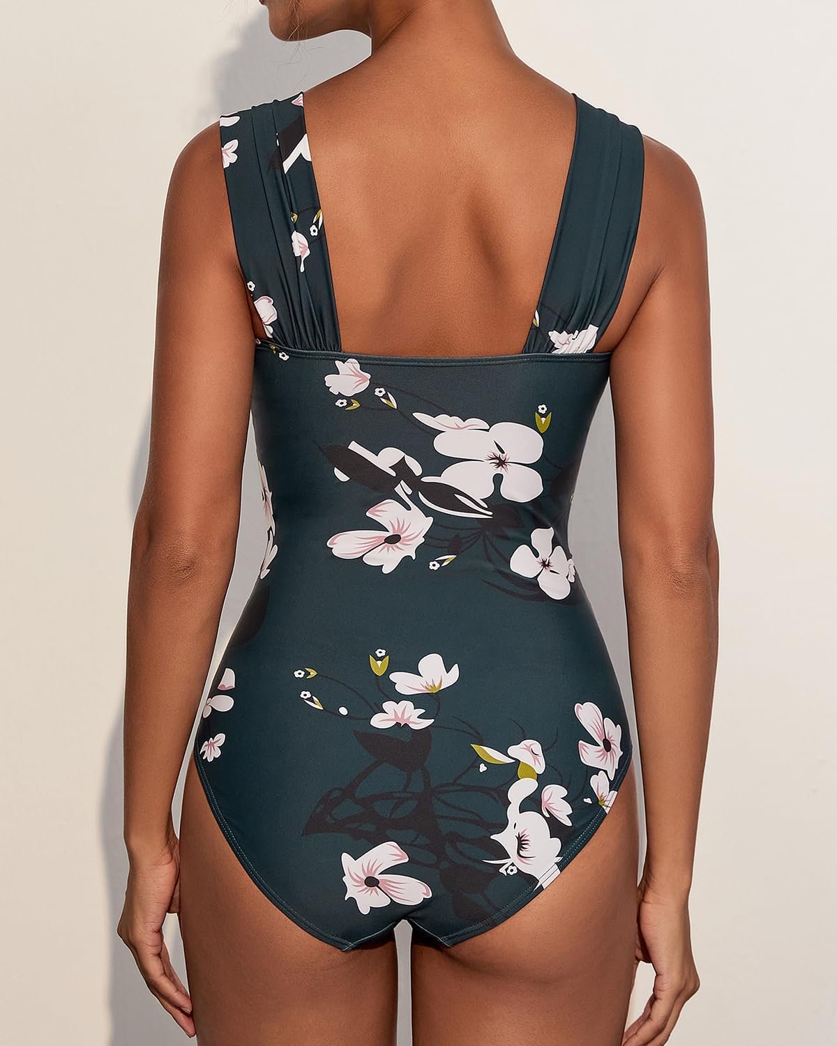 One Piece Bathing Suit for Women Tummy Control Swimsuits Square Neck Ruched Modest Swimwear