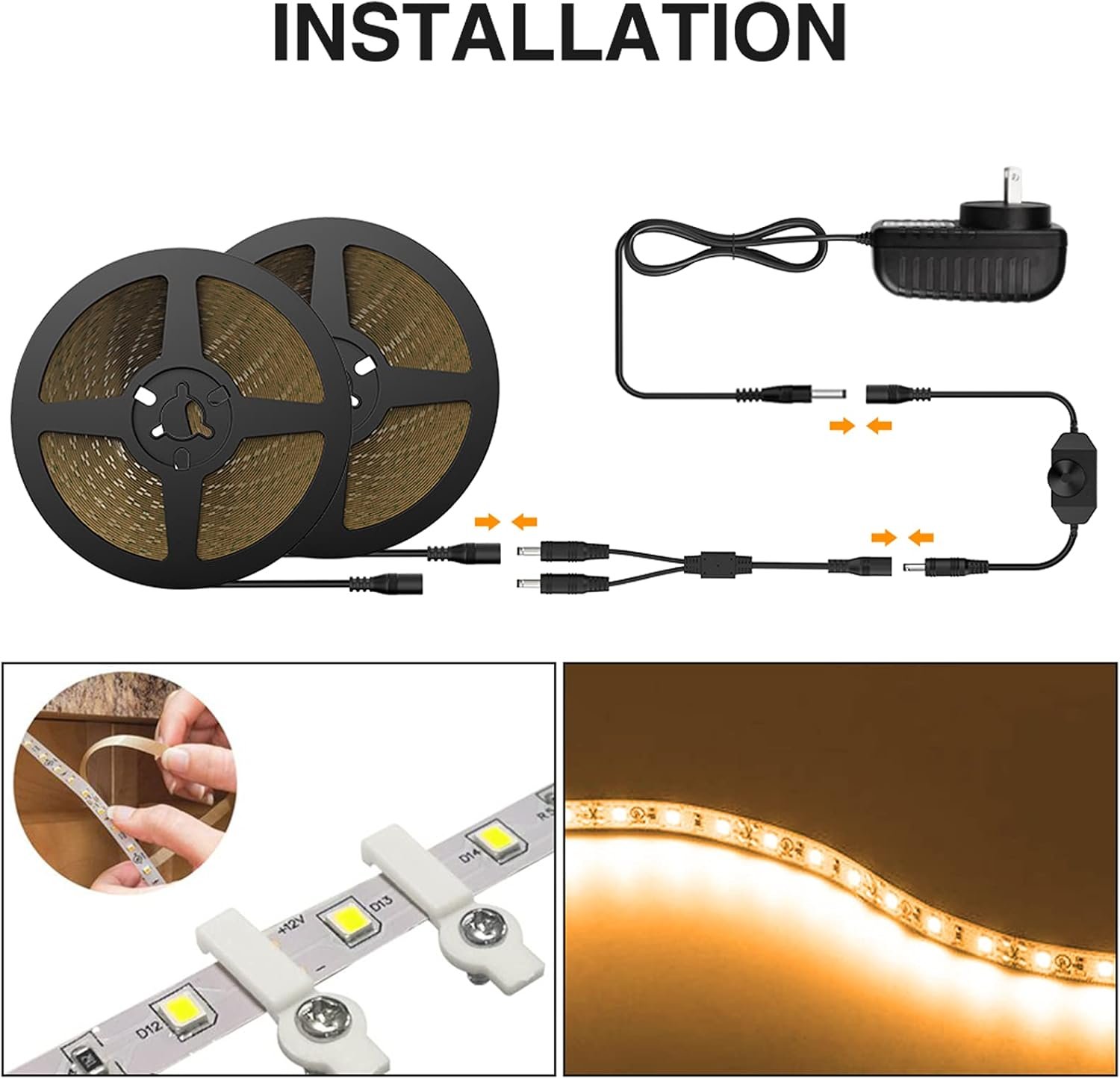 Easy to Install: Simply stick the warm white strip light to a dry and clean surface. Strong adhesives and strong clips further hold the light strip in place firmly