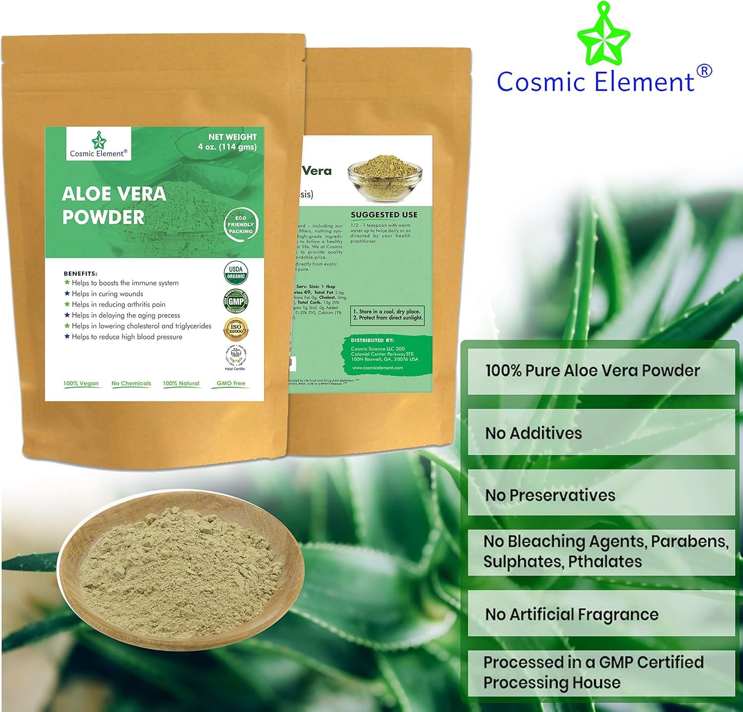 CERTIFIED ORGANIC AND VEGAN: Embrace the purity with our Certified Organic, Vegan, Gluten-Free, Kosher, and Halal Aloe Vera Powder, sourced with care to meet the highest standards of quality and ethical practices.