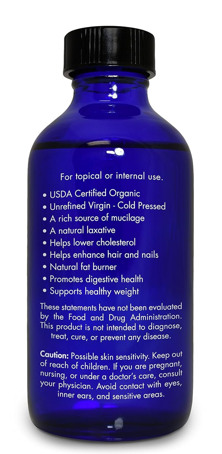 USDA Certified OrganicUnrefined Virgin – Cold PressedA rich source of mucilageA natural laxativeHelps enhance hair and nailsPromotes digestive healthSupports healthy weight