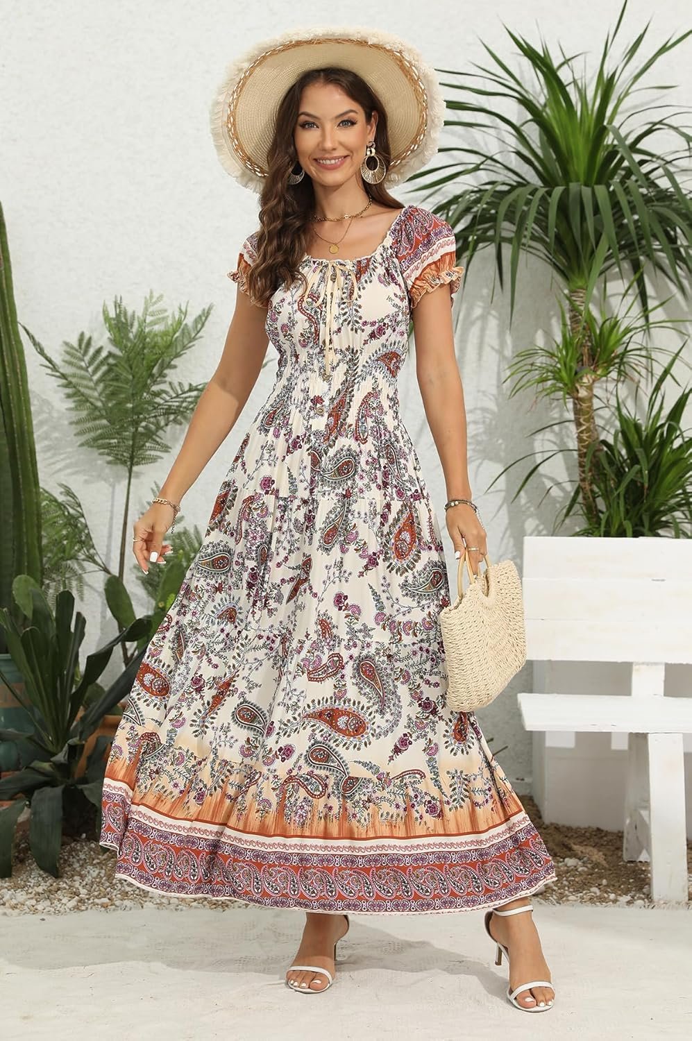 Womens 2025 Summer Boho Floral Maxi DressWomens 2025 Summer Boho Floral Maxi Dress