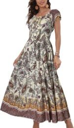 OSTOO Women’s Flowy Bohemian Dress for Short Sleeves Floral Print Summer Maxi Dress