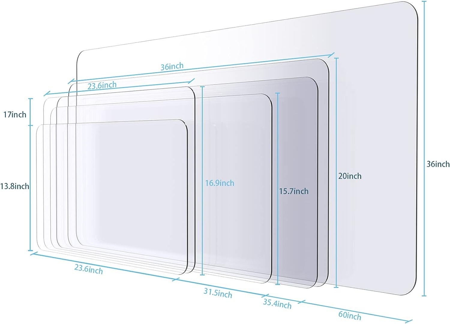 Clear desk pad: To be a protector for your desk, can keep the original look of the desktop, While you work ,you can put the important information or to do list under the desk mat. THE CLEAR ONE IS BETTER FOR TEXTURED TABLE TOPS OR ON TOP OF A TABLECLOTH.