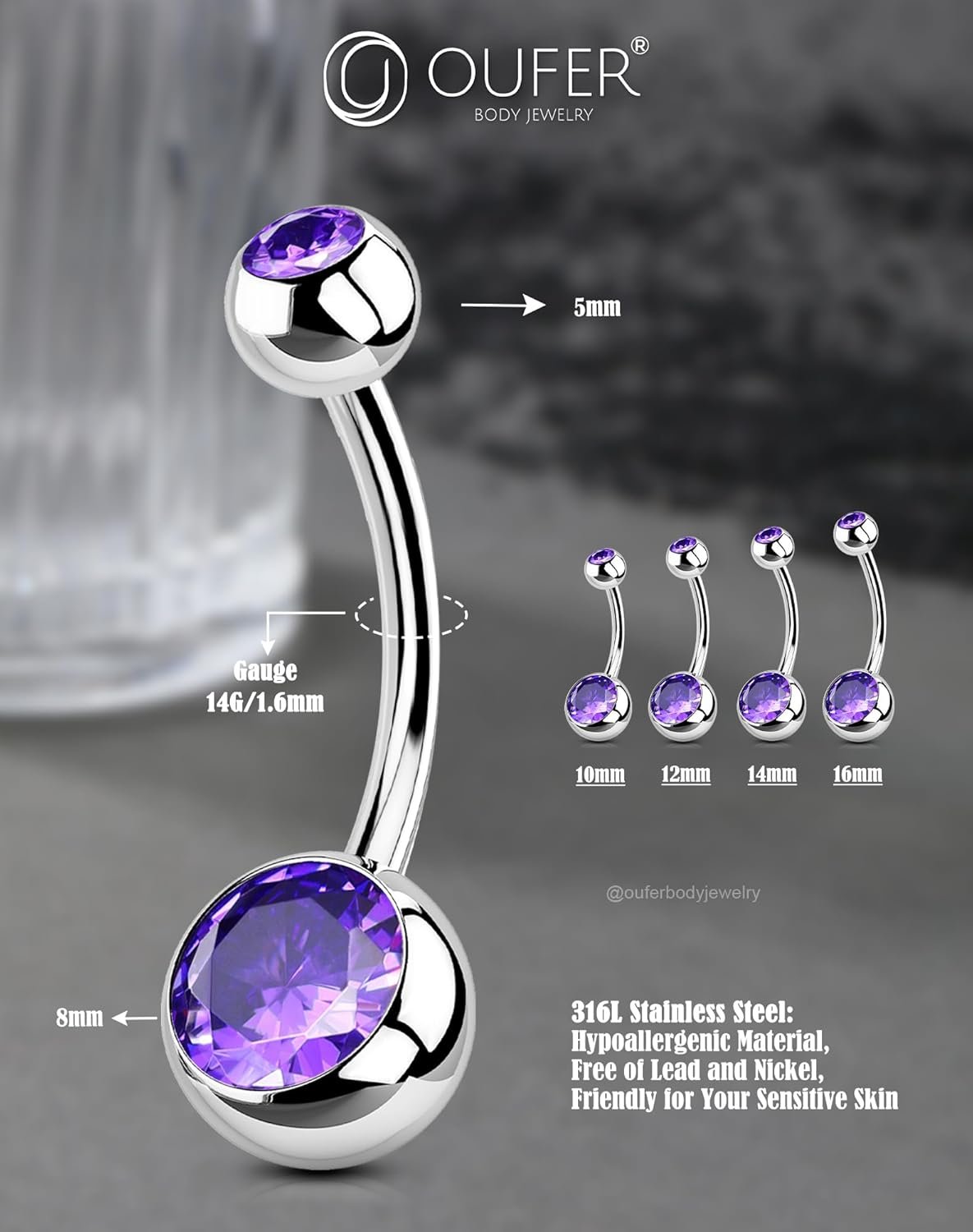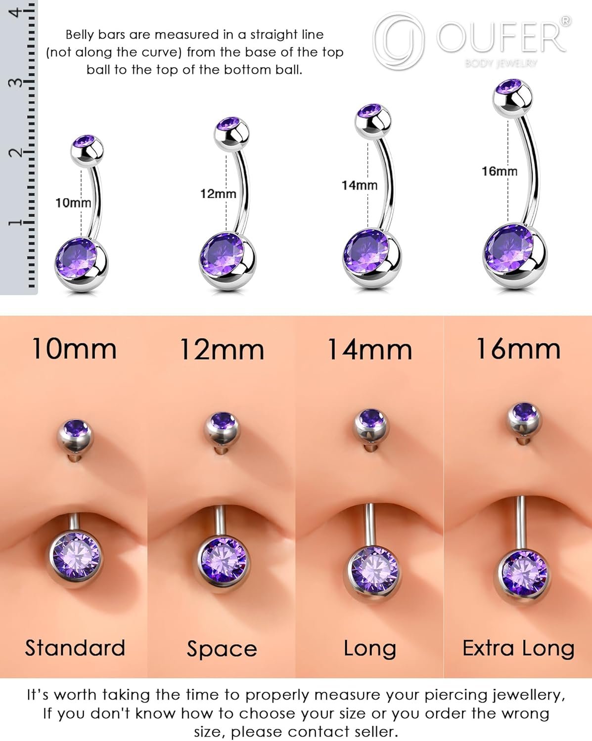 OUFER Belly Button Rings Surgical Stee, Internally Threaded Belly Rings, 14G Belly Piercing Jewelry, Belly Button Rings, Navel Piercing Jewelry For Women Men
