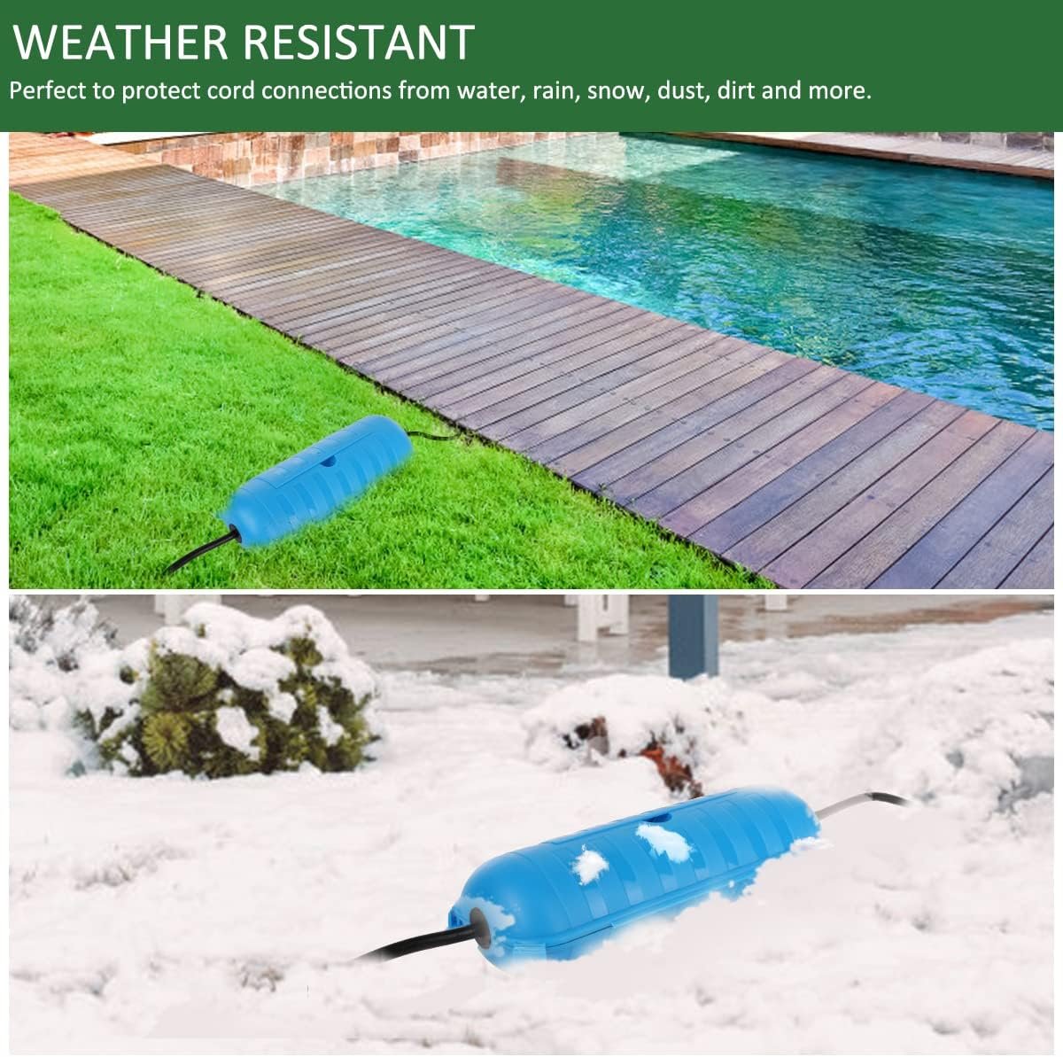 Made with heavy-duty reinforced PP material to withstand rain, snow, water, dust, dirt and more, continuously protecting outdoor connections from electrical hazard.