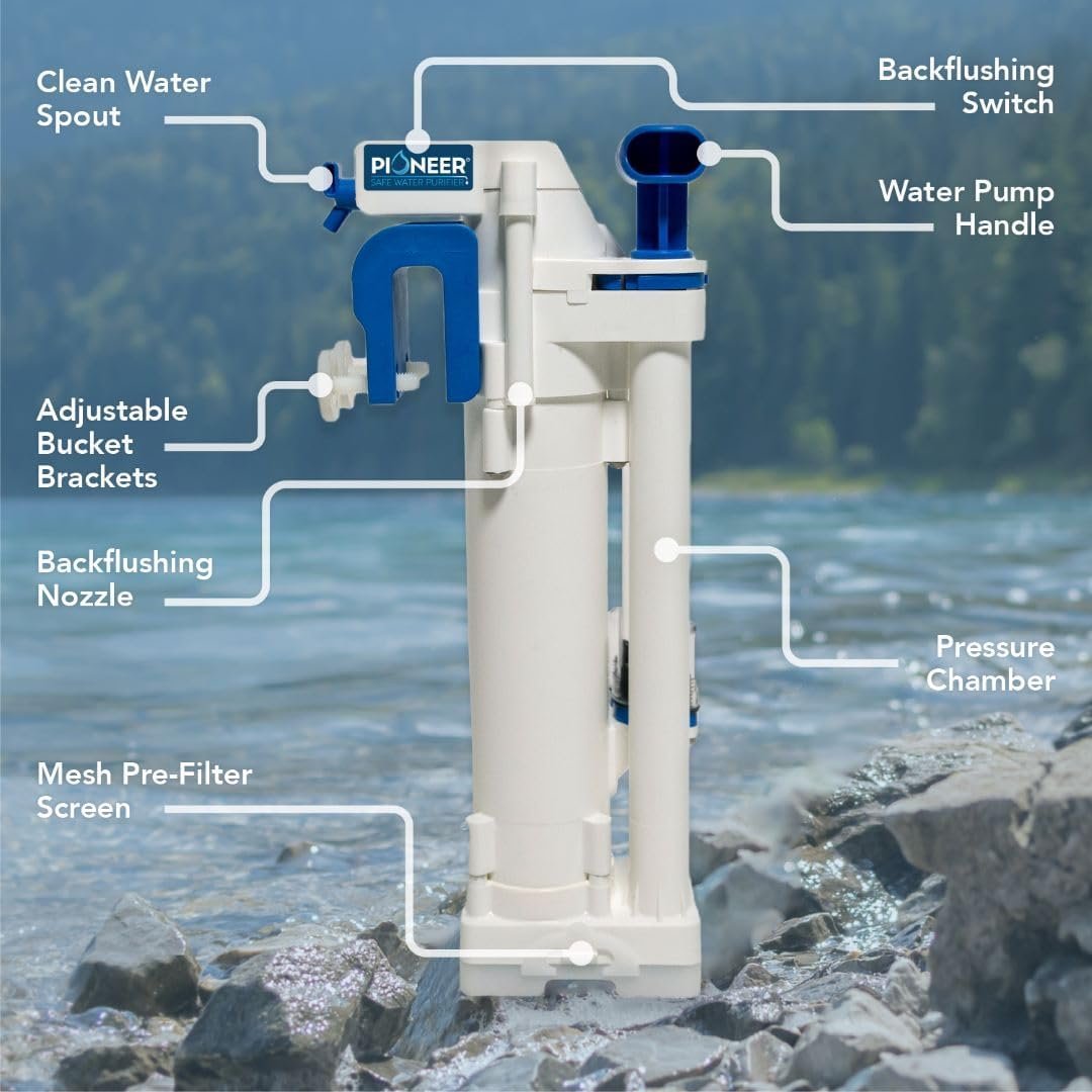 LIVE BETTER WITH CLEAN WATER – The Pioneer Safe Water Purifier is a powerful water filtration system that is attached to a bucket or other water-carrying vessel and will filter water for the whole family.