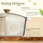 Effortless Cleaning & Safety First: The flat and smooth enamel surface not only delivers a superior cooking experience but also makes cleaning a breeze. Easily remove food residues with a gentle wipe from a soft sponge or cloth. Additionally, we’ve included a cotton heat-resistant cap, ensuring a comfortable grip and safeguarding you from burns when handling the pot’s handles and lid.
