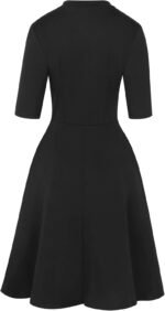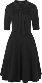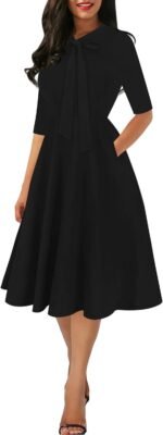 oxiuly Women’s Vintage Bow Tie V-Neck Pockets Casual Work Party Cocktail Swing A-line Dresses OX278