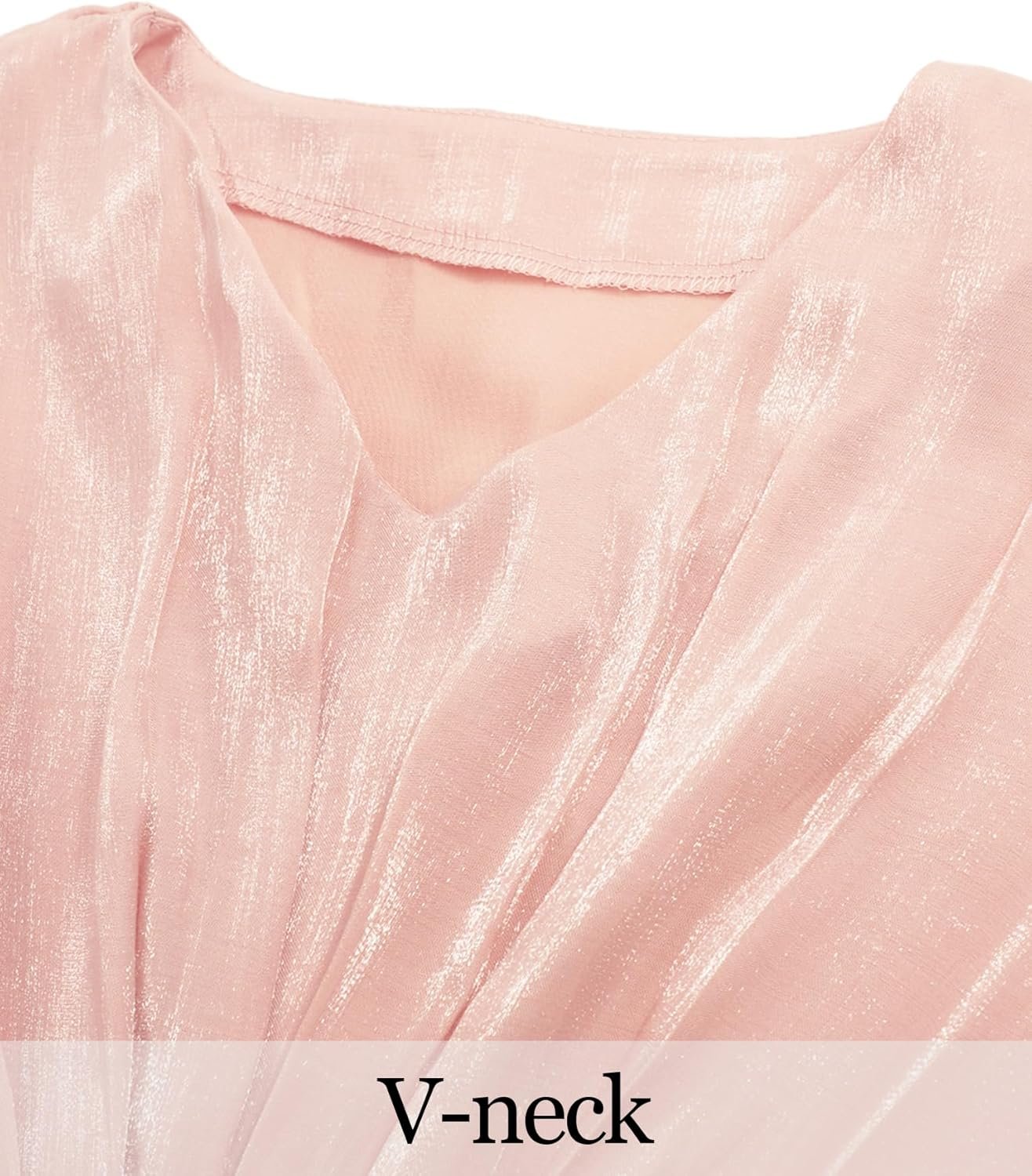 Panegy Women’s Shiny Long Dress V-Neck Batwing Sleeve Kaftan Dress Solid Ethnic Maxi Robe