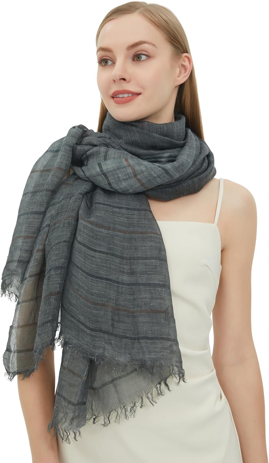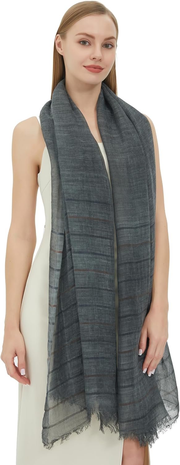 PANTONIGHT Fashion Scarf Wool Stripy Scarf Large Size Vintage Party Shawl for Women Lightweight Scarf