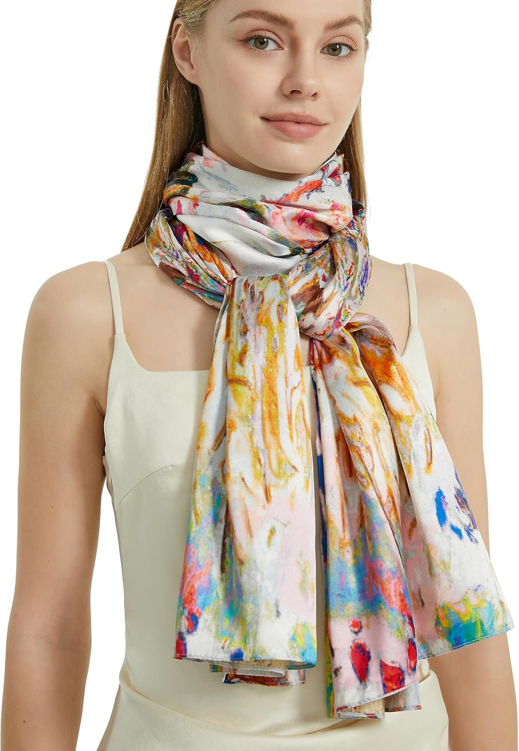 PANTONIGHT Scarfs for Women Fashion Long Floral Scarf Lightweight Silk Feeling Head Scarf Printing Shawls Double Sides