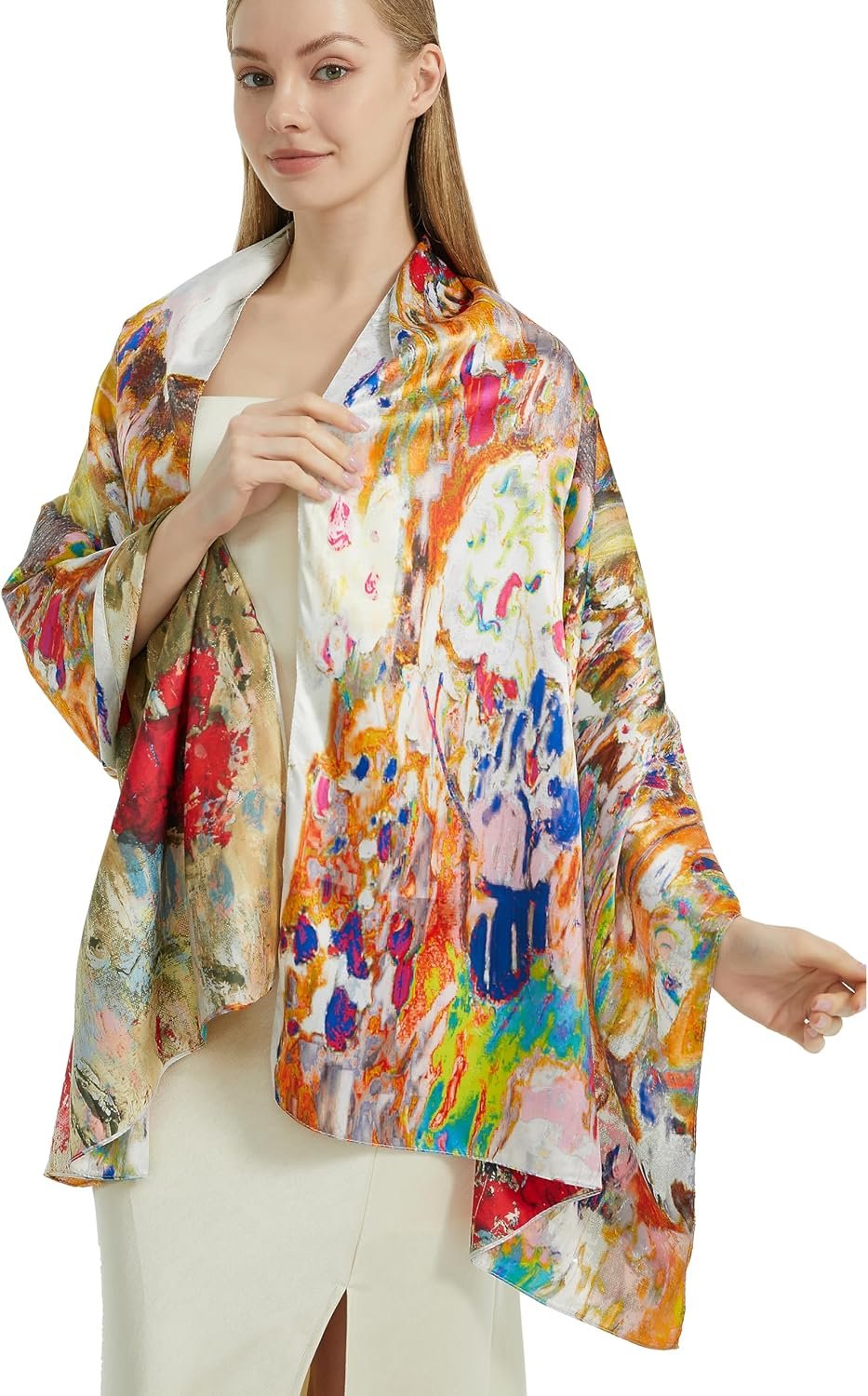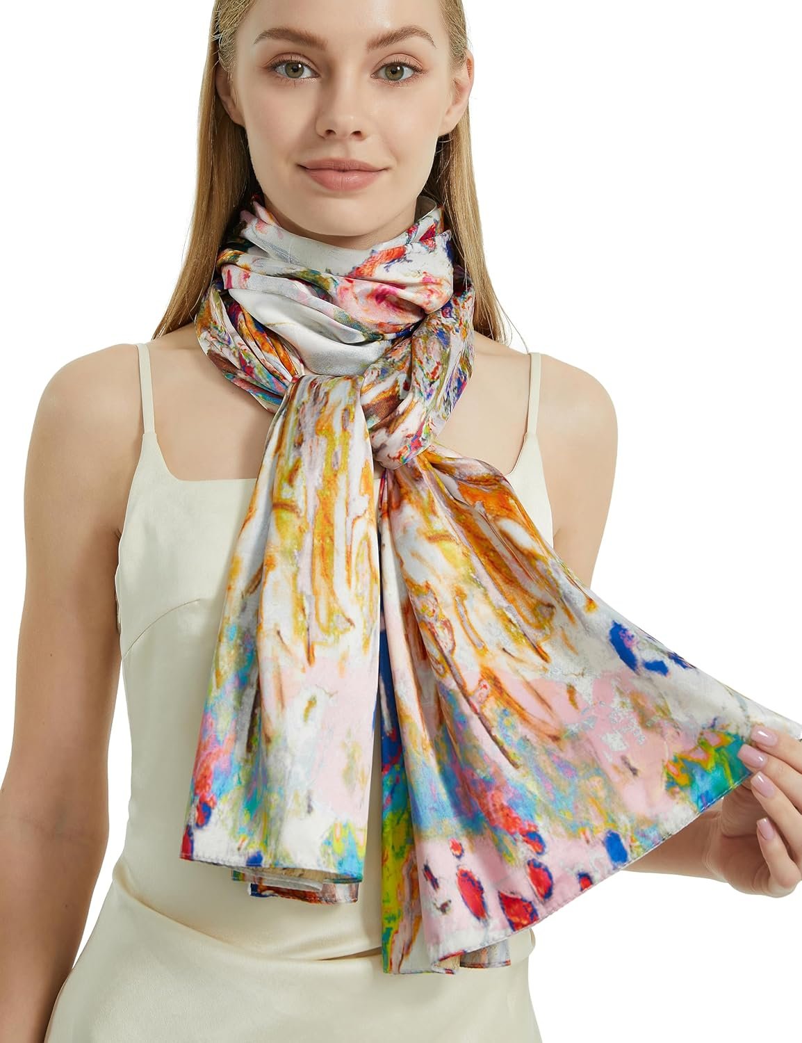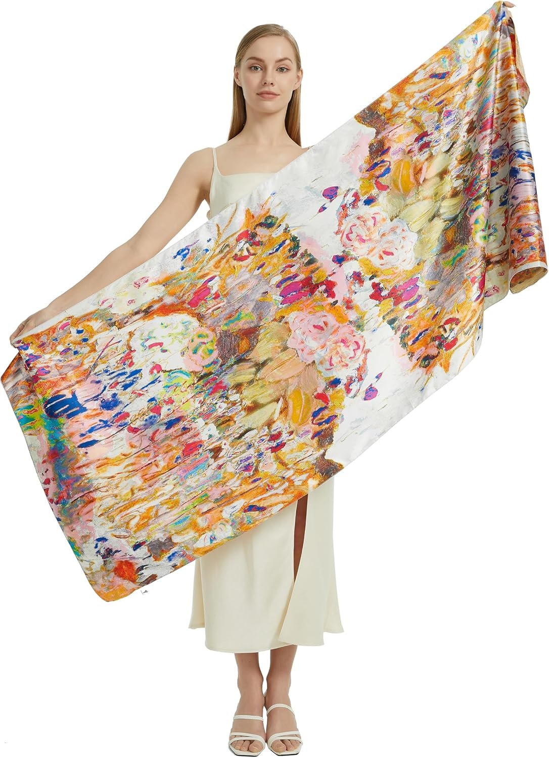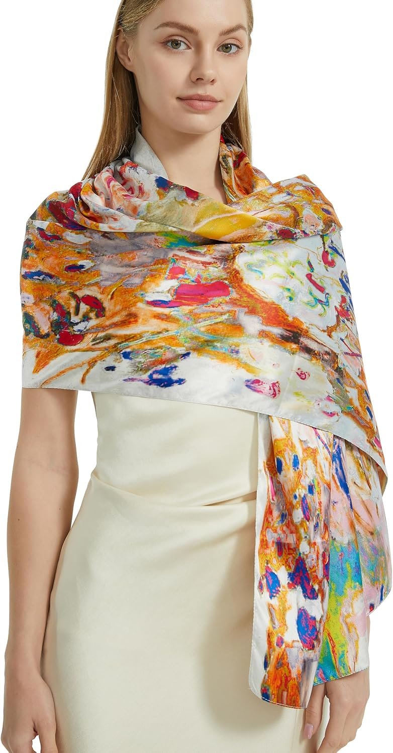 These high-quality silk feeling scarfs provide an elegant appearance, very soft and comfort touch feeling for you.They we all with two sides different floral printings.You can use it as two different scarves. It can wear in many ways, you can put in your bag when you need at any time. Attend a party, or family travel, or go to work suitable for you in different occasions to wear.Ideal present for friends and relatives. Great for Gift Ideas: Birthday, Bride, Bridesmaid, Wedding, Christmas and New Year.Top gifts for good friends and families. Washing and maintenance: Please use warm water below 30 ℃ wash alone and do not use washing machine.