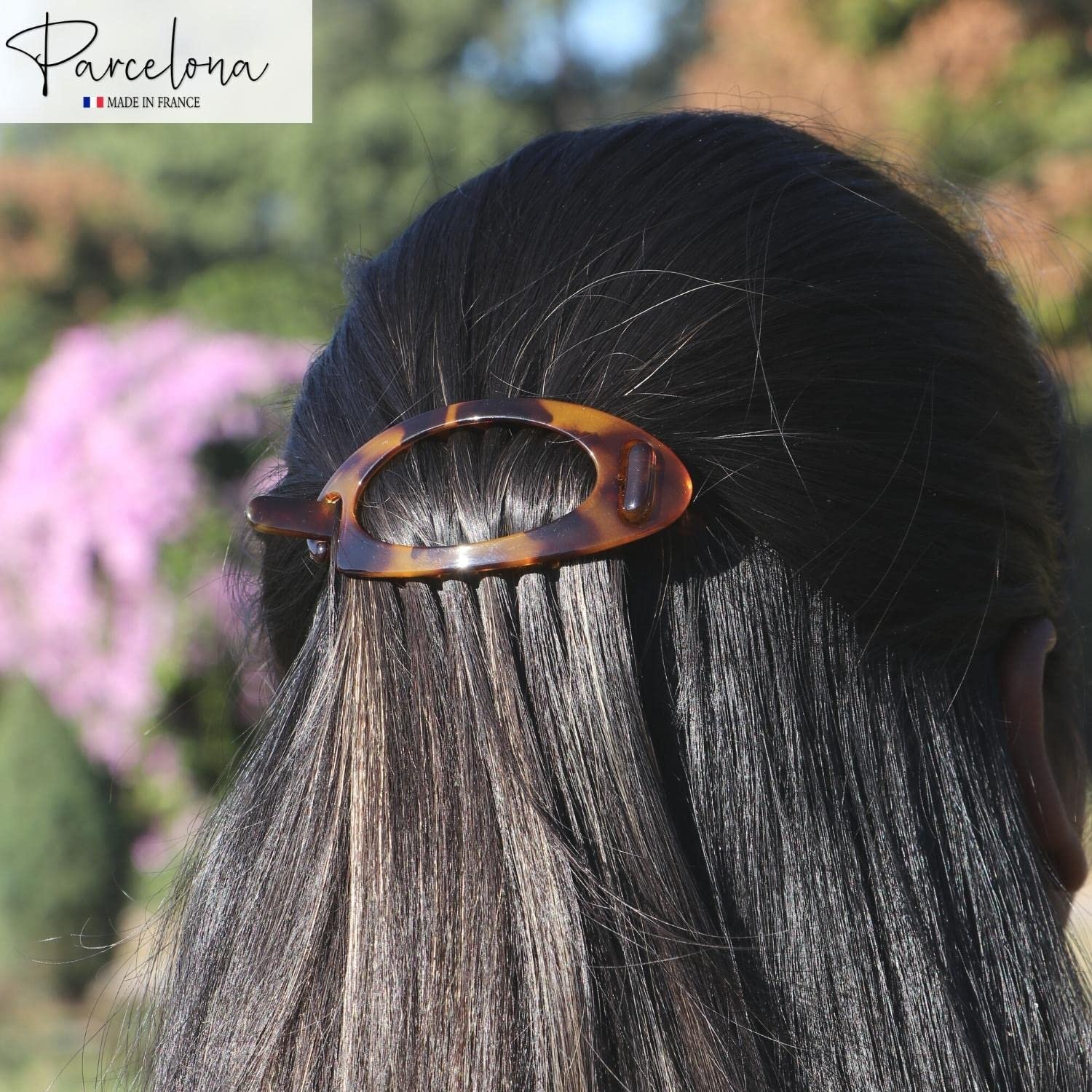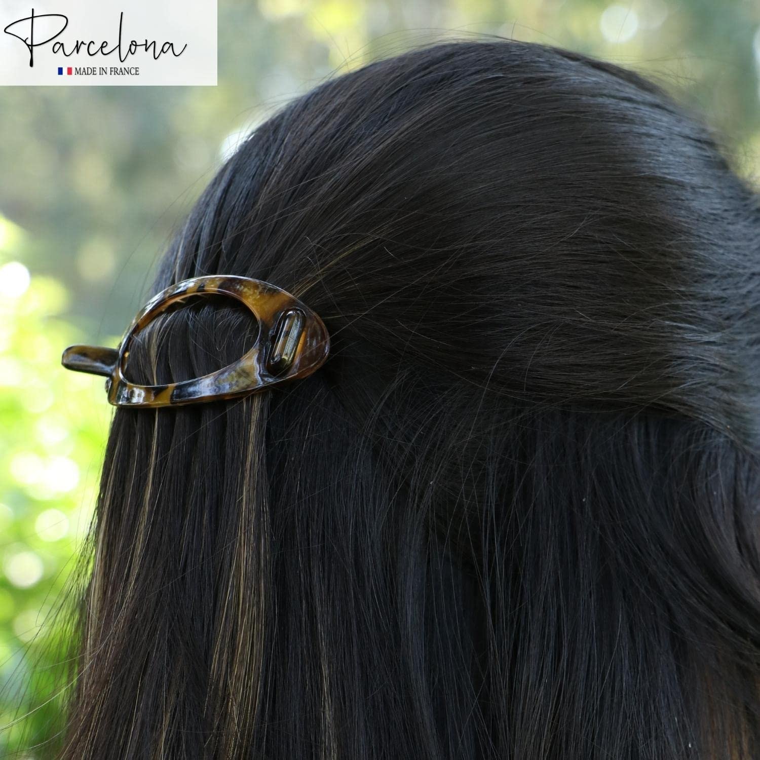 This hair accessory is made in France with celluloid acetate. Our Parcelona hair ornaments are made in Europe, perfectly polished for a splendid finish, distinctive patterns, and designs. At Parcelona, the integrity and finest quality of products are guaranteed. Reach out to us for any kind of product related issue.