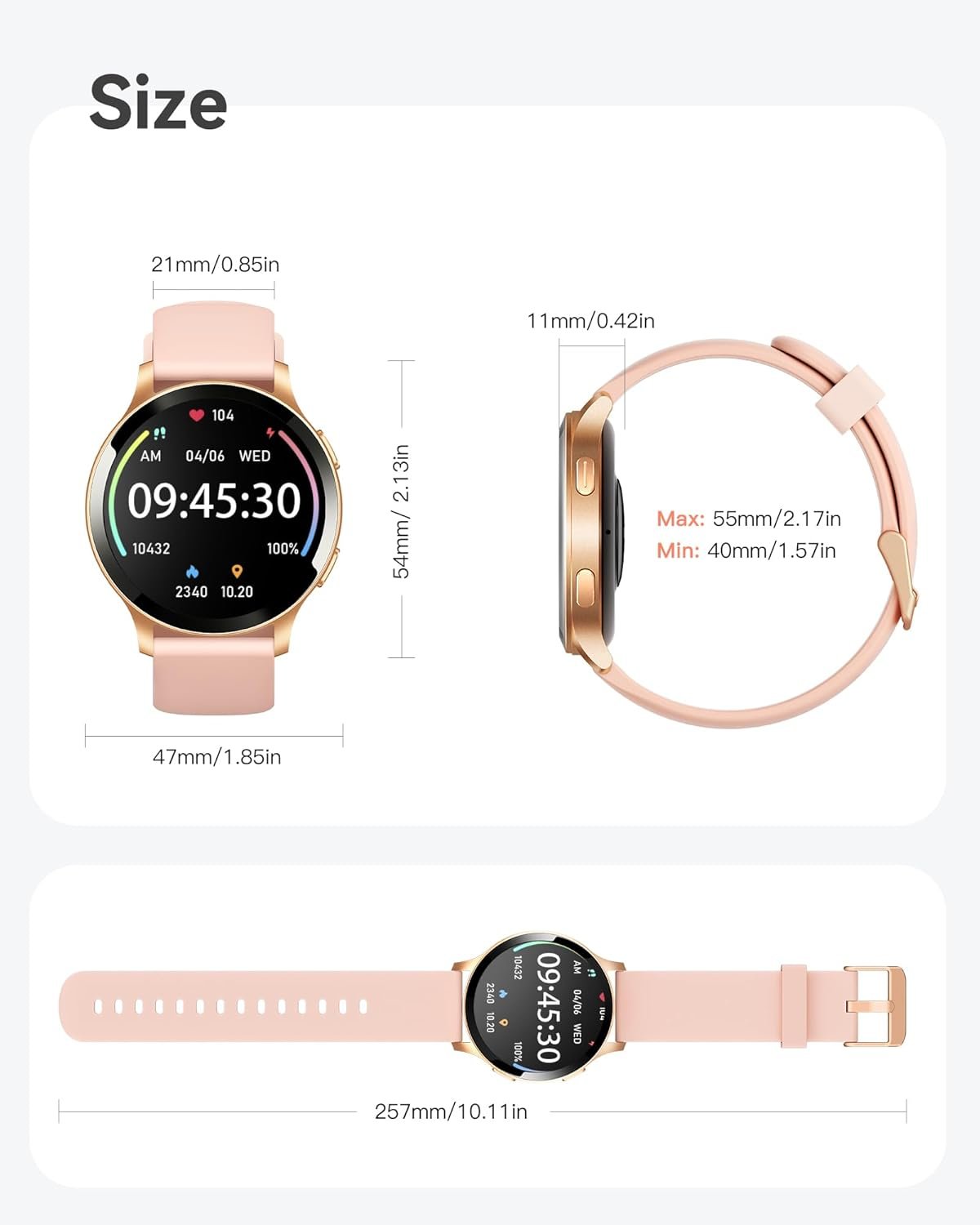 【Full Monitoring Your Health】This Smart Watch for Women With advanced health tracking features, Keep an eye on your health metrics (heart rate, blood oxygen, sleep quality). Our smartwatch will provide comprehensive sleep quality analysis based on your sleep(deep sleep, light sleep, and awake), and help you make a reasonable adjustment to your lifestyle.