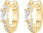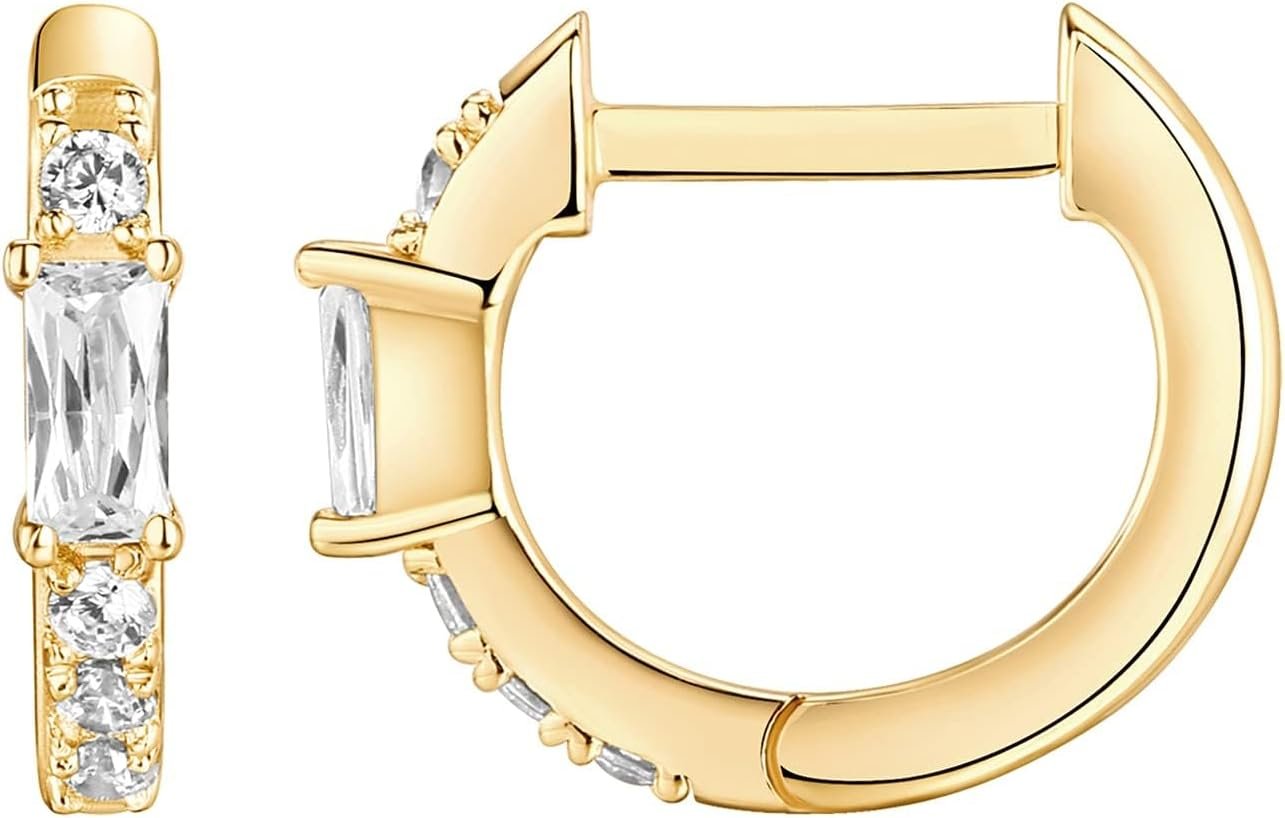PAVOI 14K Gold Plated 925 Sterling Silver Post Cubic Zirconia Huggie Earrings | Small Gold Hoop Earrings for Women | CZ Stud Cuff Earring