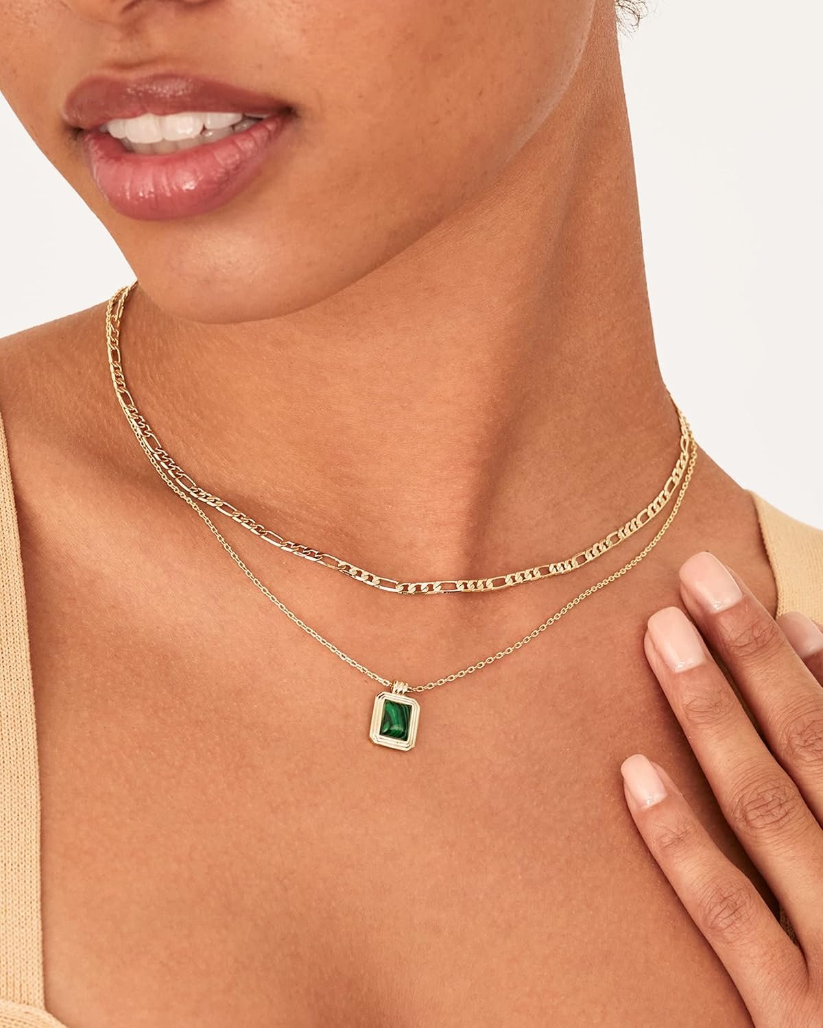 PAVOI 14K Gold Plated Layered Necklaces for Women | Gemstone Pendant Figaro Chain Necklace | Carnelian, Green Aventurine, Malachite Layering Necklace