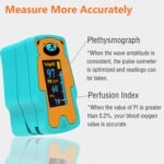 ✅【Visual Data, Fast Measurement, Auto Shutdown】The pulse oximeter fingertip provides real-time readings: blood oxygen saturation (SpO2), pulse rate per minute (PR), pulse intensity level (PI), pulse waveform indicator, pulse indicator, and battery level. Under normal circumstances, the oximeter can provide test results for blood oxygen and heart rate in as little as 3 seconds. It automatically shuts down 10 seconds after the finger is removed from the oximeter.
