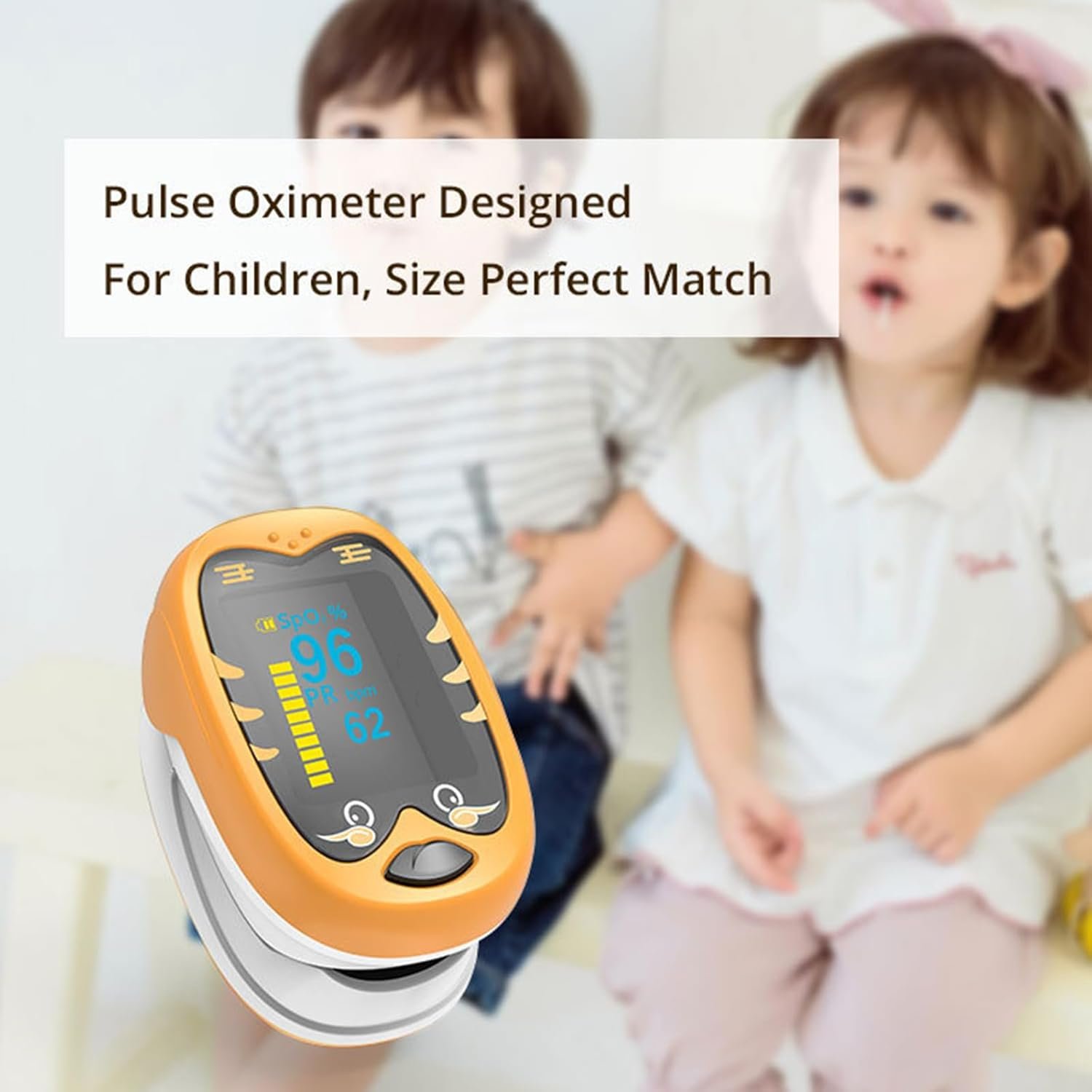 Designed for children:pulse oximeter for kids Made of soft silicone material, customized size for children’s fingers to fit Kid’s little finger, accurate testing of blood oxygen saturation, providing a comfortable wearing experience.oximeter Know your Kid’s health record anytime, anywhere, of course, adults can also use the device.