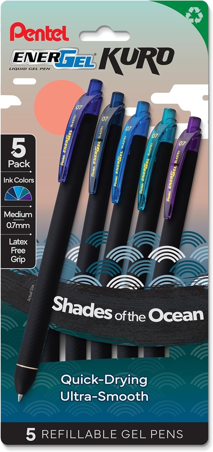 Be the first to review “Pentel EnerGel Kuro Shades of the Ocean, Retractable Liquid Gel Pen, Assorted Ink Colors, Pack of 5 (BL437OCNPF5)”
