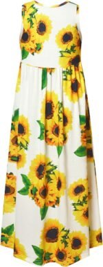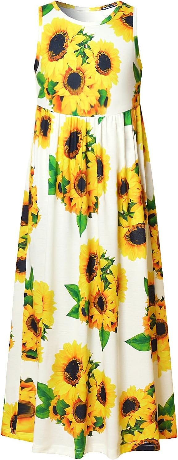 Perfashion Girls Maxi Dress,Cotton,Casual,Sleeveless/Long Sleeve Crew Neck 6-15Y