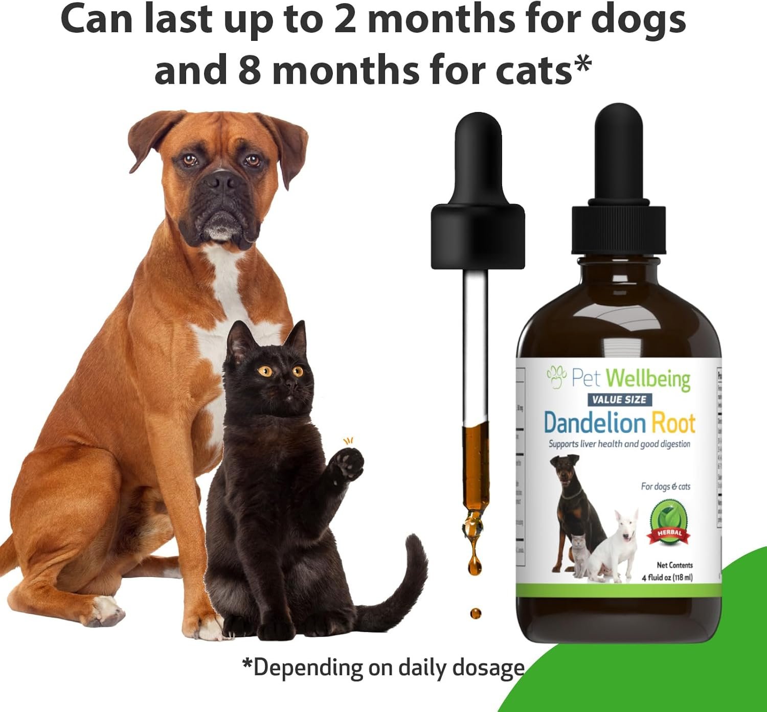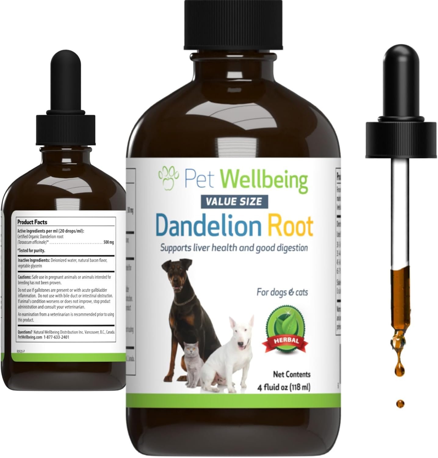 Pet Wellbeing Dandelion Root for Dogs & Cats – Liver & Heart Health, Digestive Function, Blood Sugar Support, Certified Organic – Veterinarian-Formulated Herbal Supplement 4 oz (118 ml)